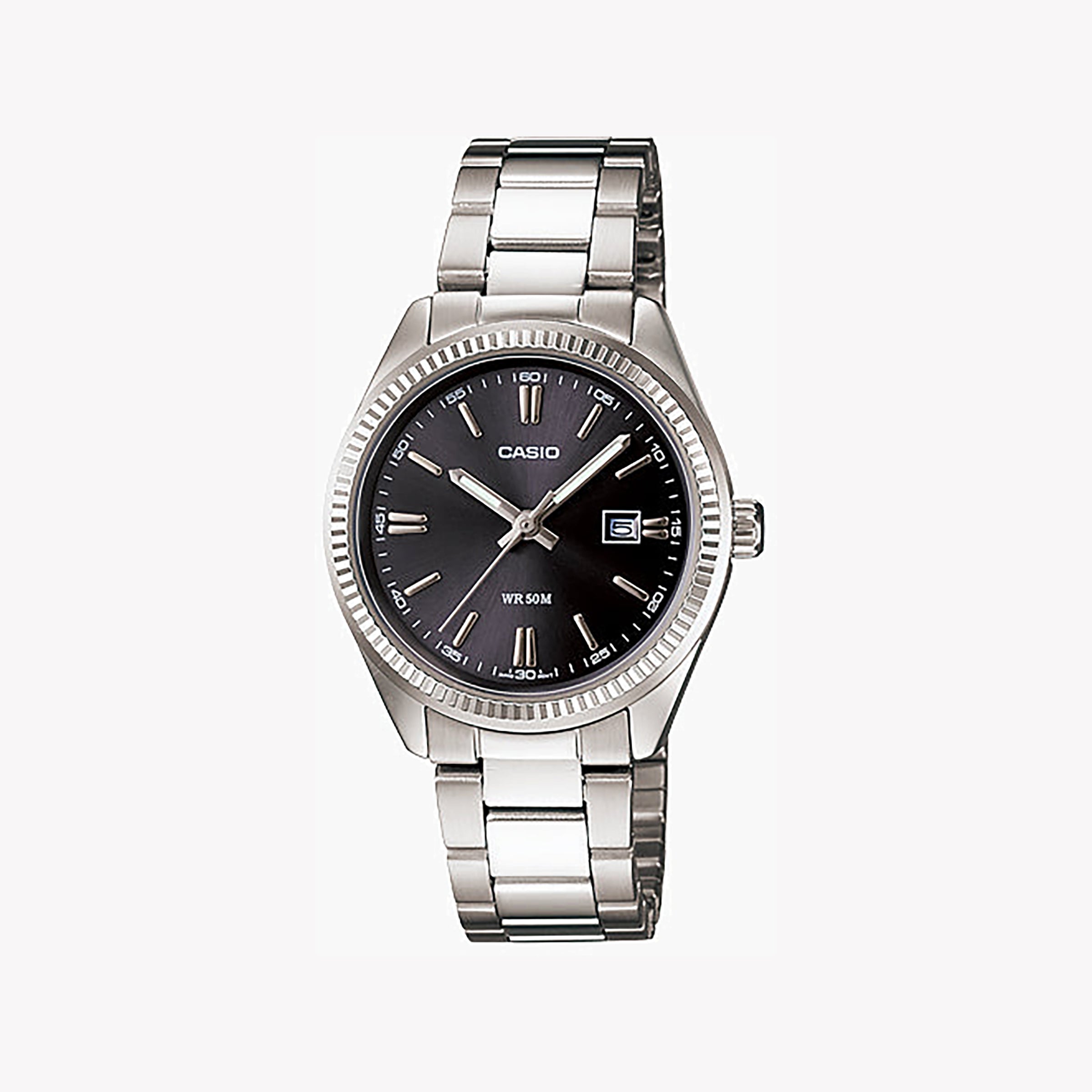 LTP-1302D-1A1VDF ELEGANCE REDEFINED - Montre sophistiquée pour femme avec cadran noir chic et bracelet en métal argenté