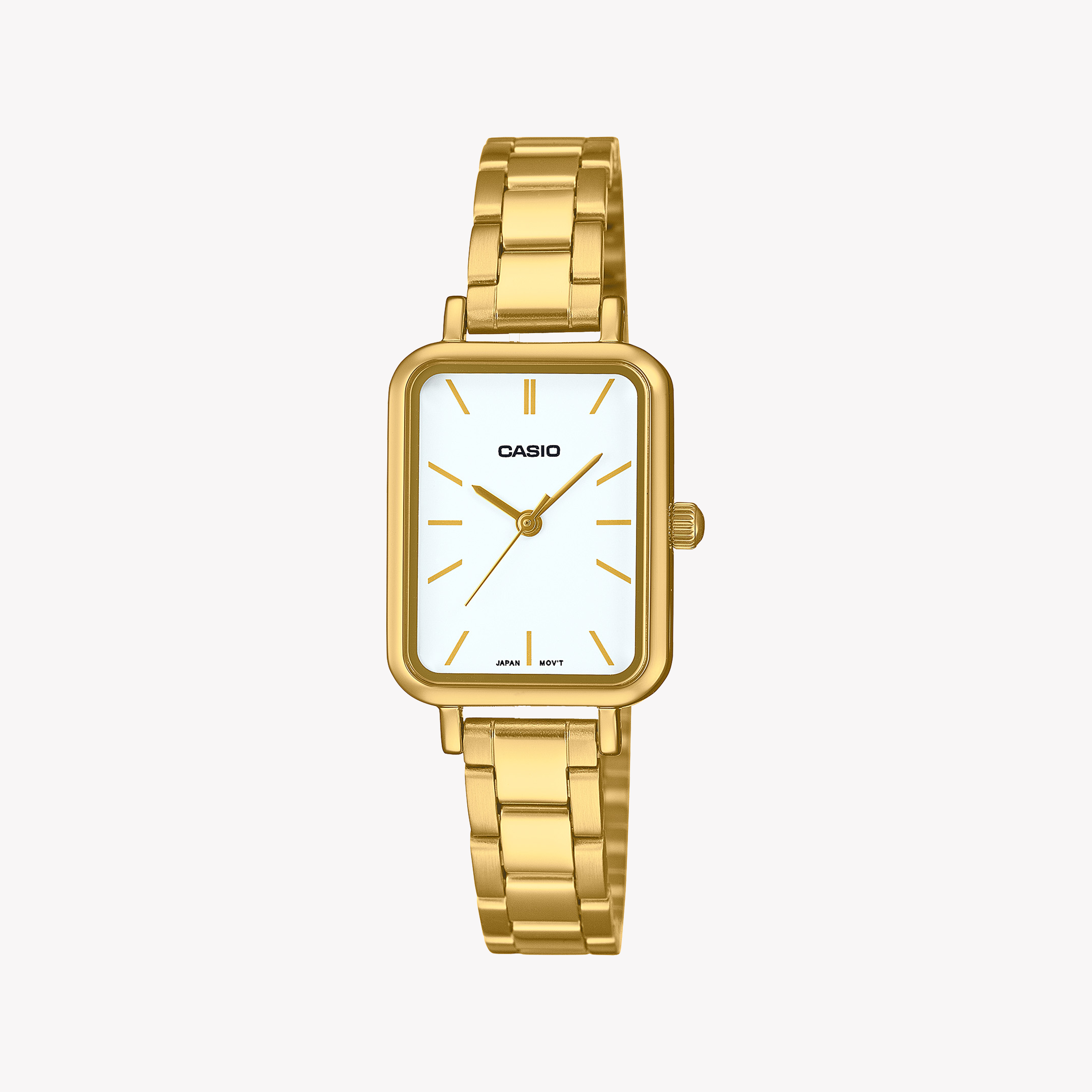 Step into a world where vintage charm meets modern functionality with the Casio Collection & Vintage Women's Watch. This exquisite timepiece is designed for the contemporary woman who appreciates the finer details in life. Its radiant gold accents and pristine white dial make this watch not only a timekeeper but also an accessory that enhances your personal style, perfect for any occasion.