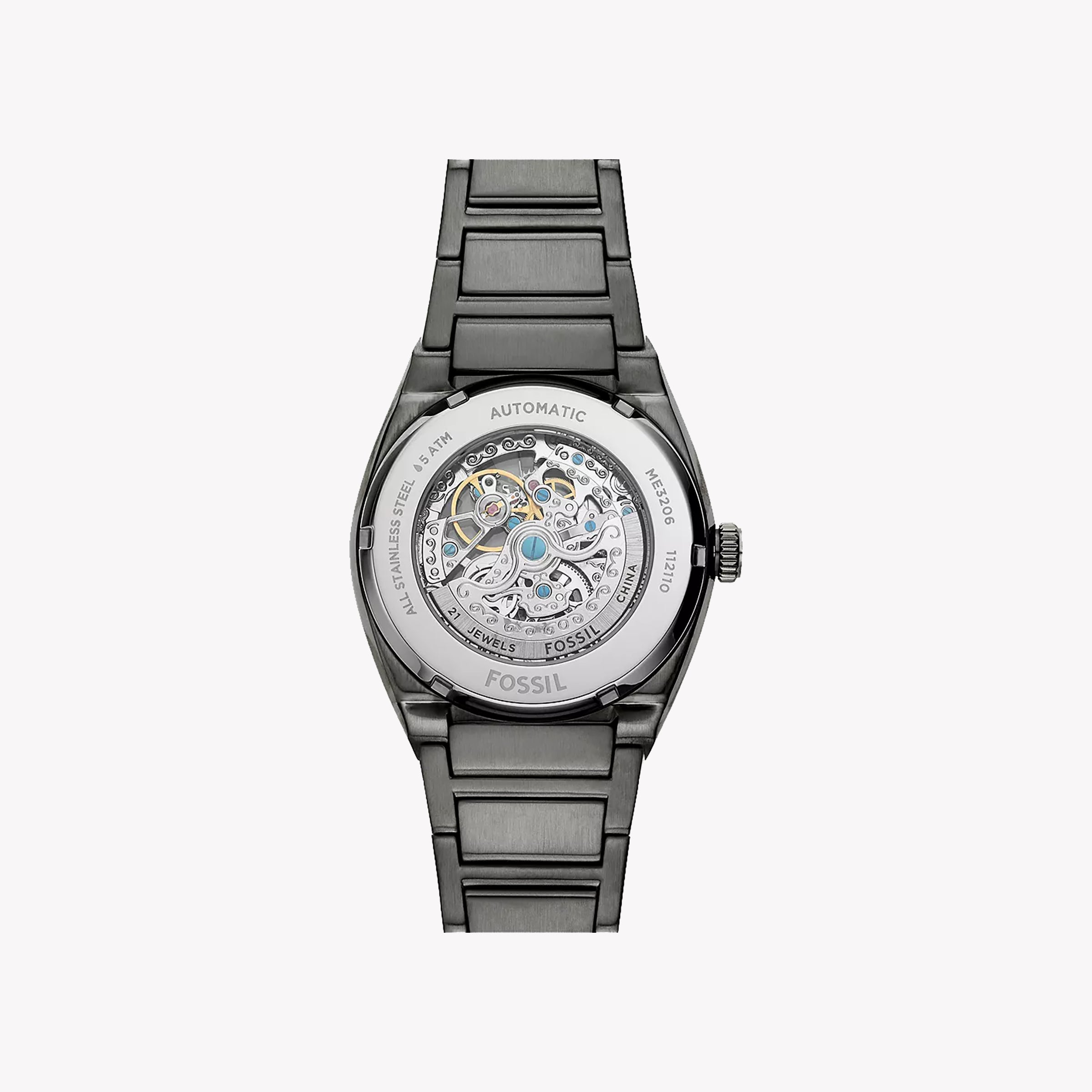 FOSSIL ME3206 ELEGANT SMOKE - MONTRE AUTOMATIQUE INTEMPOREL POUR HOMMES avec cadran gris et bracelet en acier inoxydable