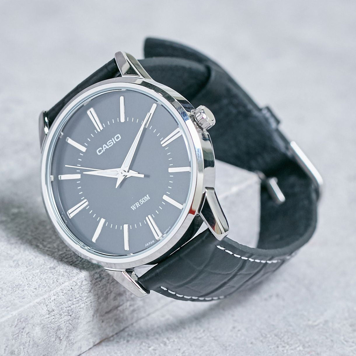 CASIO MTP-1303L-1AVDF - MONTRE POUR HOMMES ÉLÉGANCE SPORTIVE AVEC CADRAN NOIR ET BANDE EN CUIR