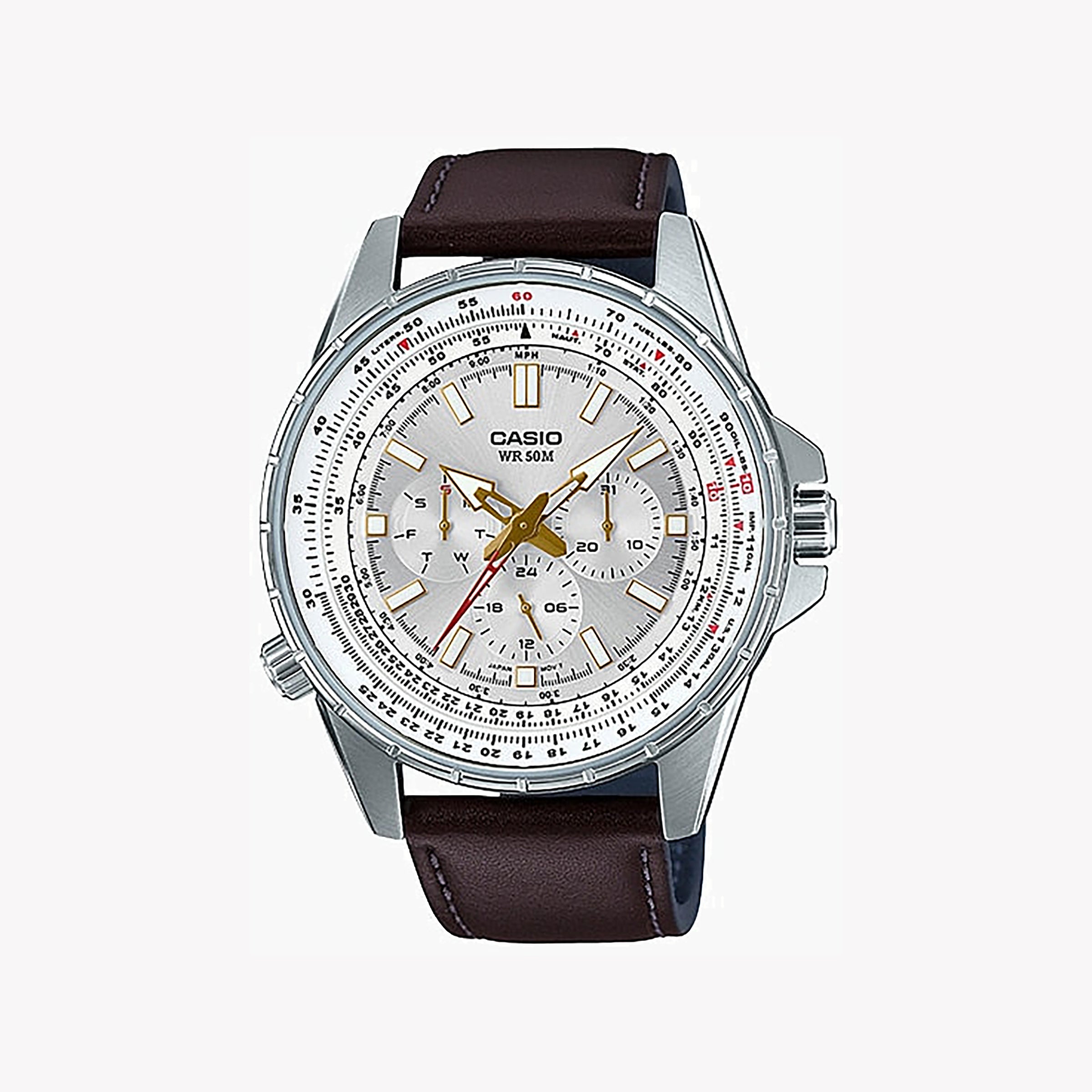CASIO MTP-SW320L-7AVDF - MONTRE POUR HOMMES ÉLÉGAMMENT ROBUSTE AVEC CADRAN BLANC ET BANDE DE CUIR MARRON