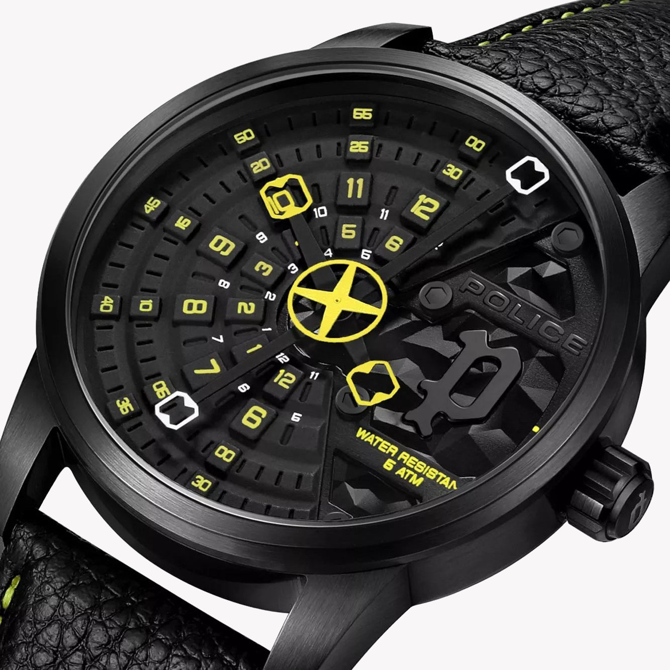 POLICE PEWJA0022101 - MONTRE POUR HOMMES BOLD ELEGANCE avec bracelet en cuir noir et boîtier élégant en acier inoxydable