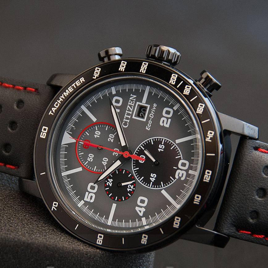 CITIZEN CA0645-15H ELEVATE - MONTRE POUR HOMMES EN ACIER INOXYDABLE NOIR AUDACIEUX AVEC TECHNOLOGIE ECO-DRIVE ET BANDE EN CUIR DE LUXE