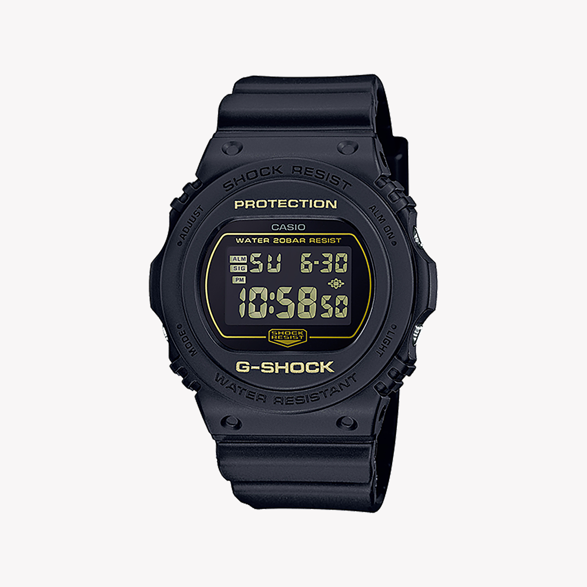 Exprimez votre sens du style avec la G-SHOCK DW-5700BBM-1DR, une montre qui répond non seulement à votre mode de vie actif mais qui fait également une déclaration audacieuse de confiance.