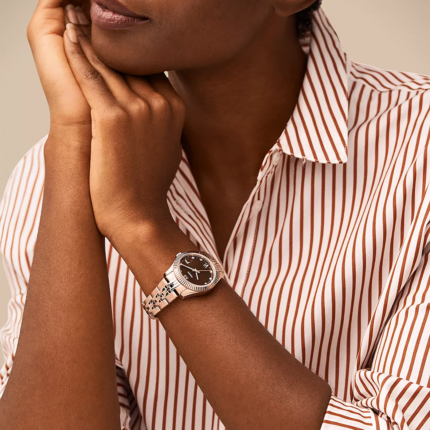 MONTRE ÉLÉGANTE FOSSIL ES5324 - ACIER INOXYDABLE OR ROSE AVEC CADRAN MARRON