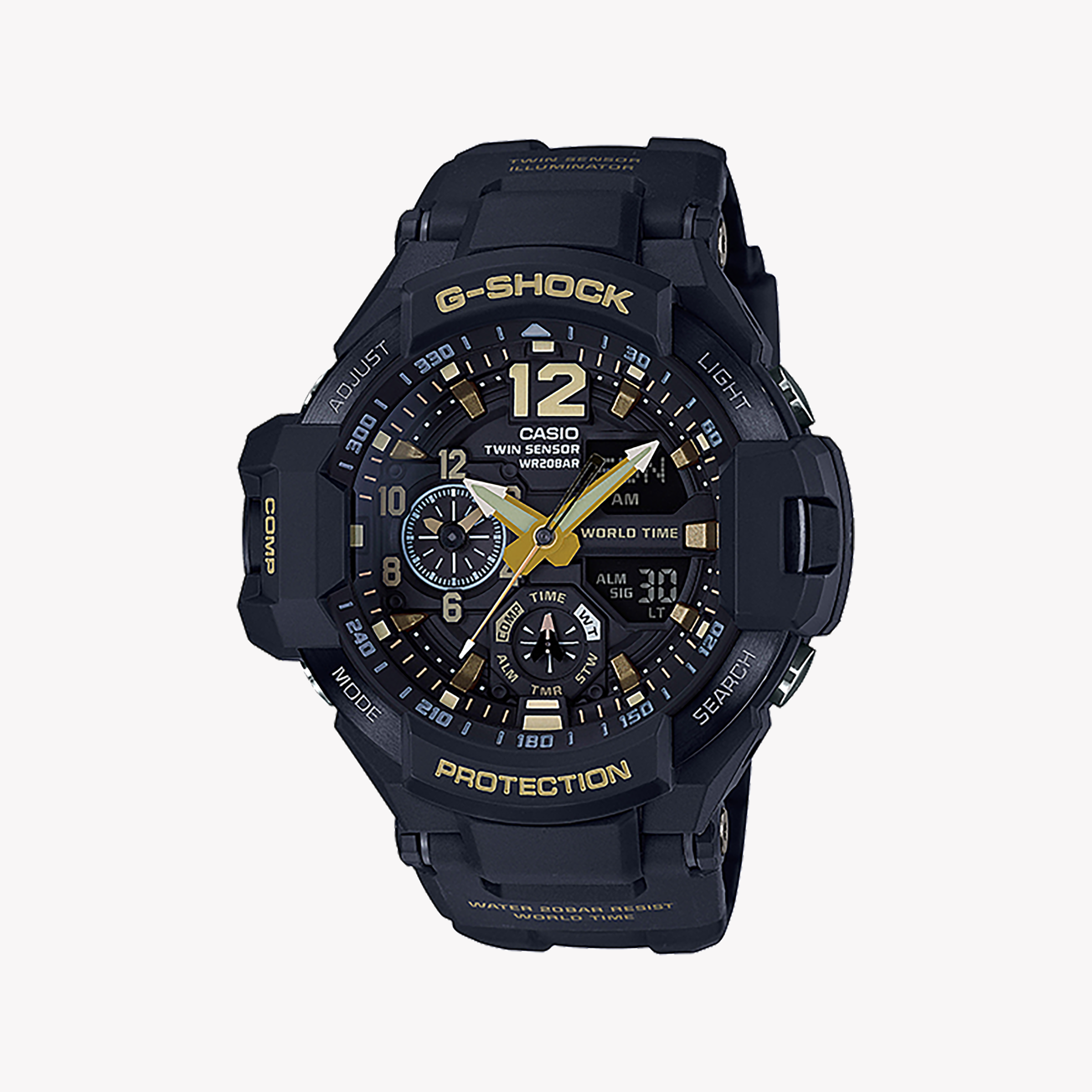 - Confort et Résilience : Avec un bracelet en résine durable et une construction résistante aux chocs, la GA-1100GB-1ADR est conçue pour suivre votre style de vie actif tout en offrant un confort maximal.
