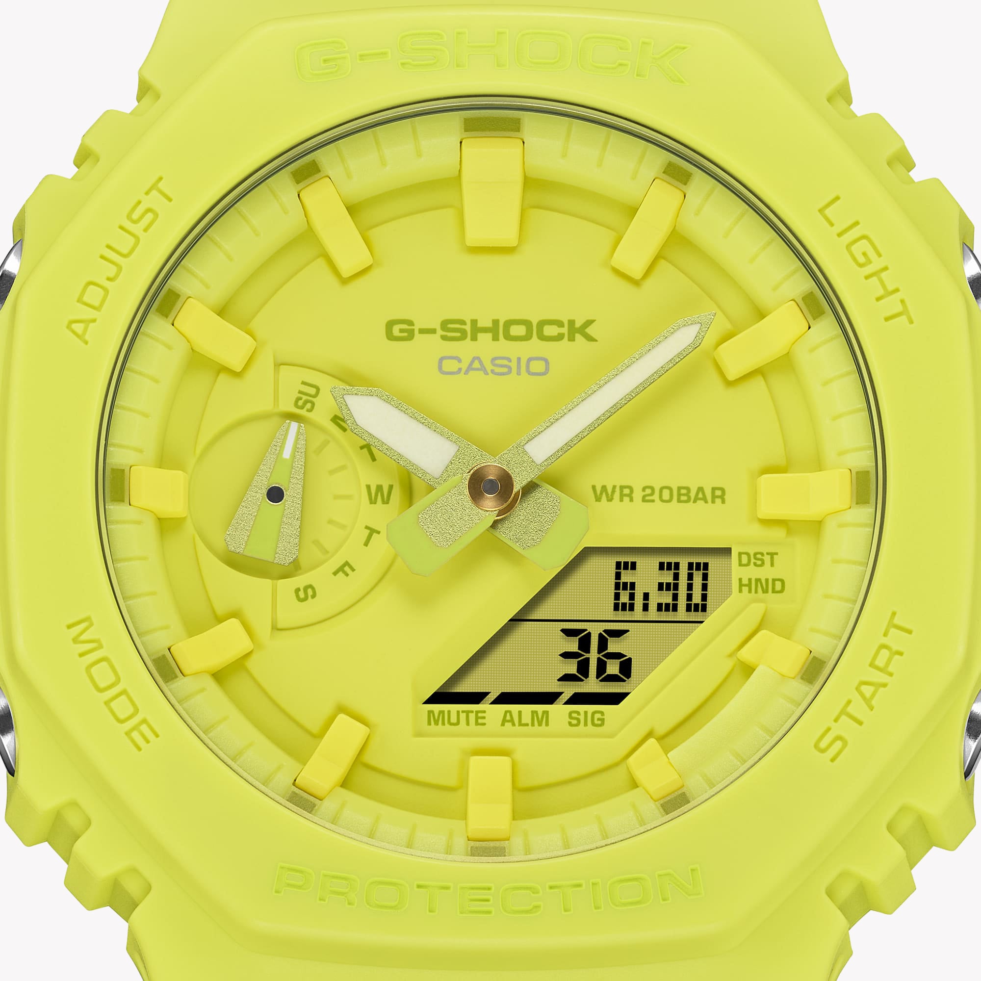 CASIO G-SHOCK GA-2100-9A9ER OAK - BOLD YELLOW ADVENTURER Montre unisexe avec un design résistant aux chocs et un cadran jaune vif.