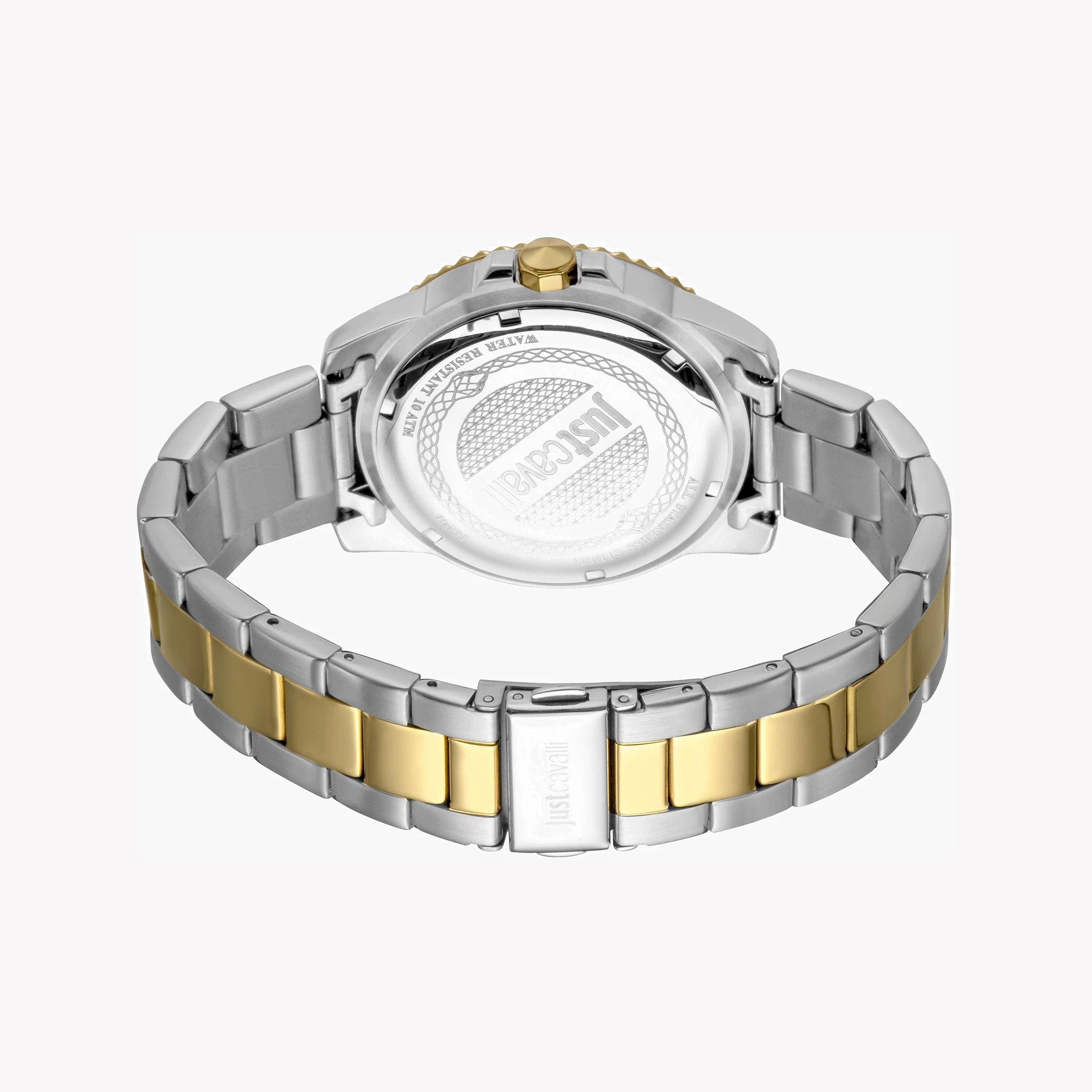 MONTRE POUR HOMMES EN ACIER INOXYDABLE BICOLORE JUST CAVALLI - CADRAN NOIR ÉLÉGANT AVEC ACCENTS DORÉS