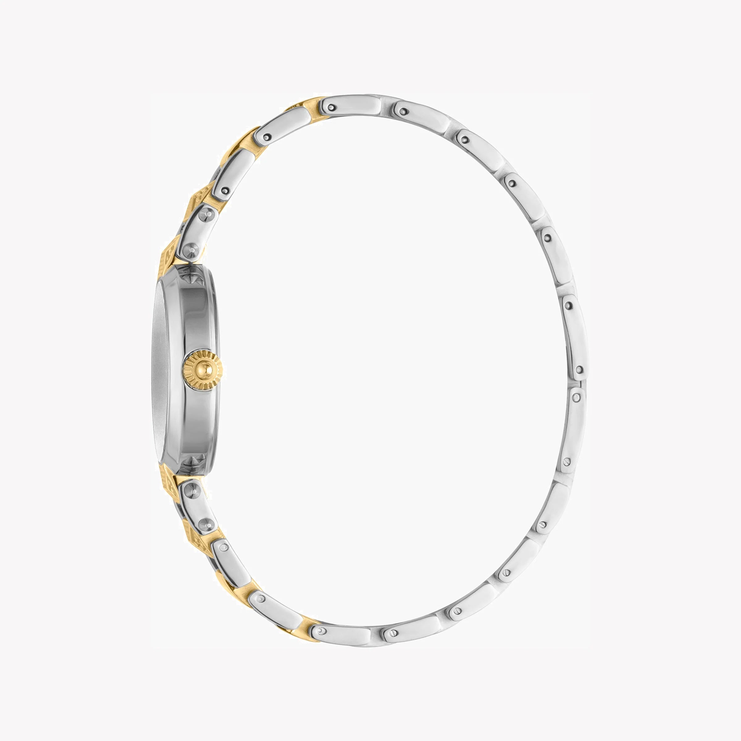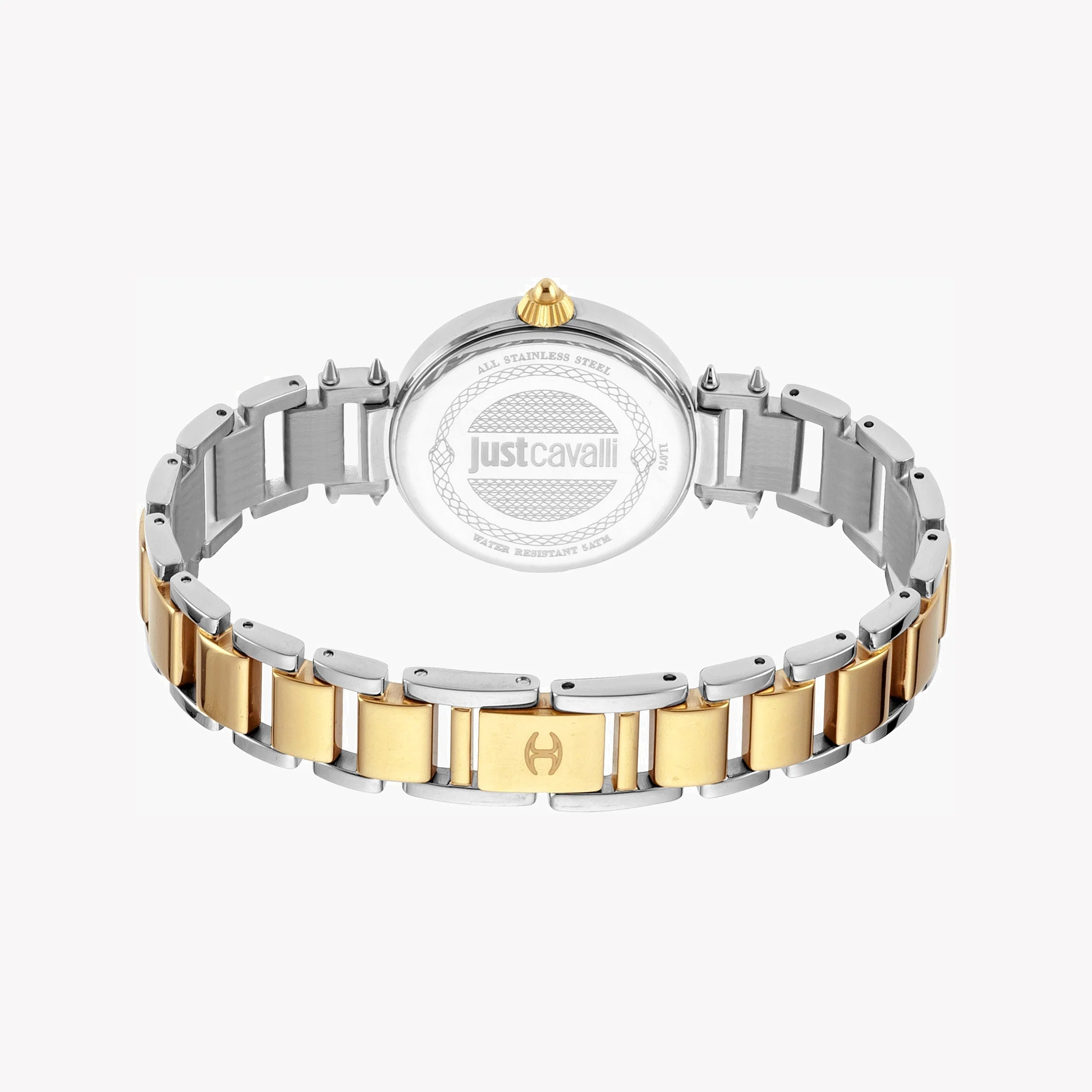 Montre pour femme JUST CAVALLI avec boîtier en acier inoxydable argenté et bracelet en acier inoxydable argenté et doré