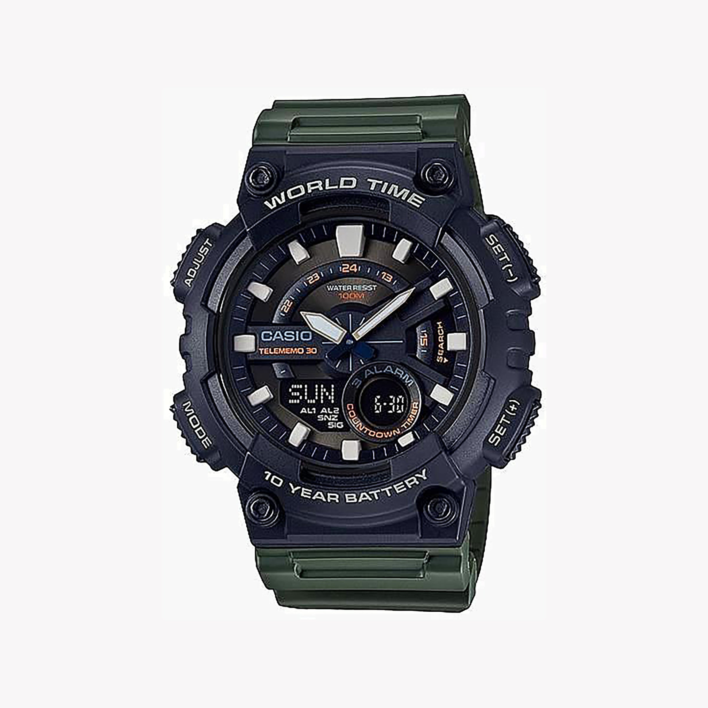 CASIO AEQ-110W-3AVDF - MONTRE POUR HOMMES AVENTURIER SPORTIF avec boîtier noir audacieux et bracelet vert