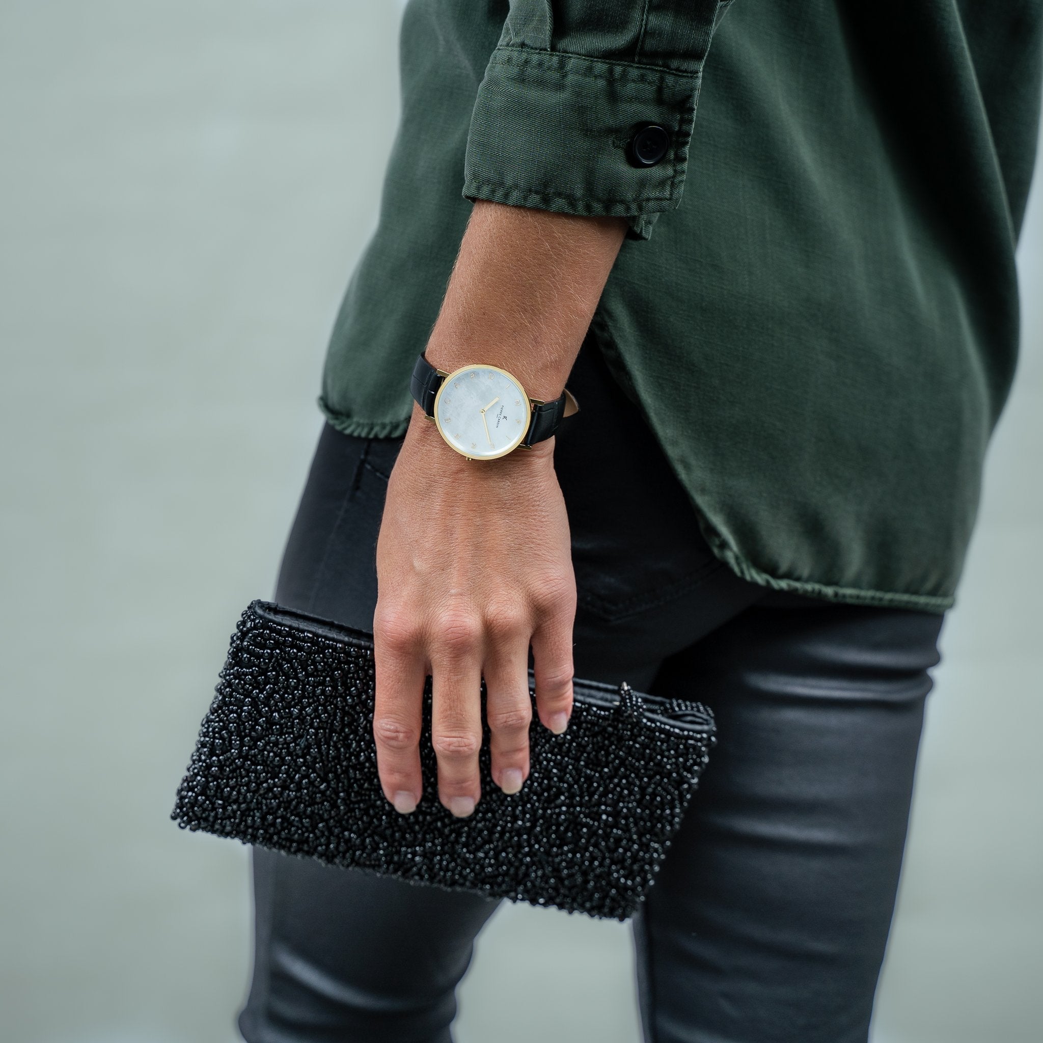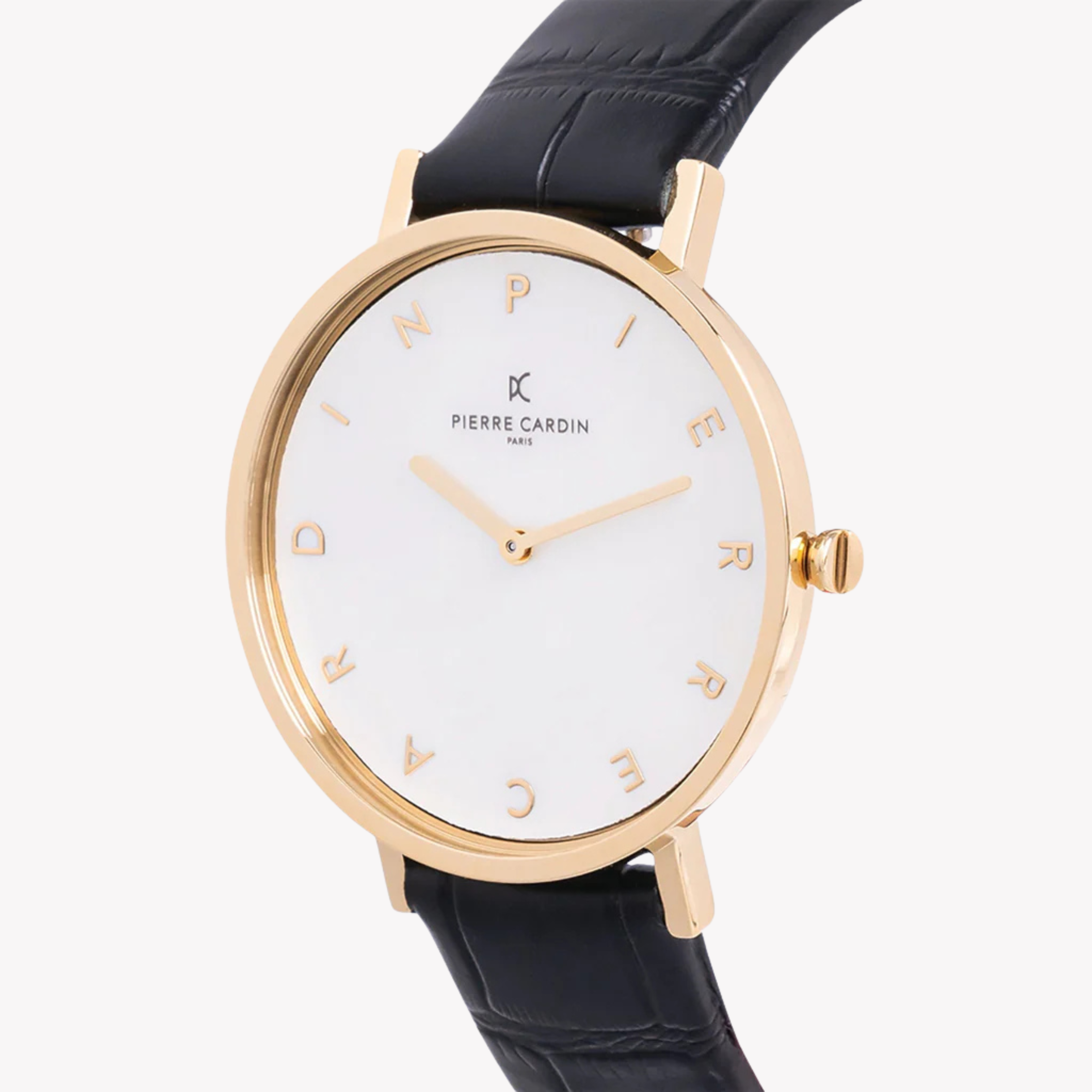 Montre Femme PIERRE CARDIN avec Boîtier en Métal Doré et Bracelet en Cuir Noir