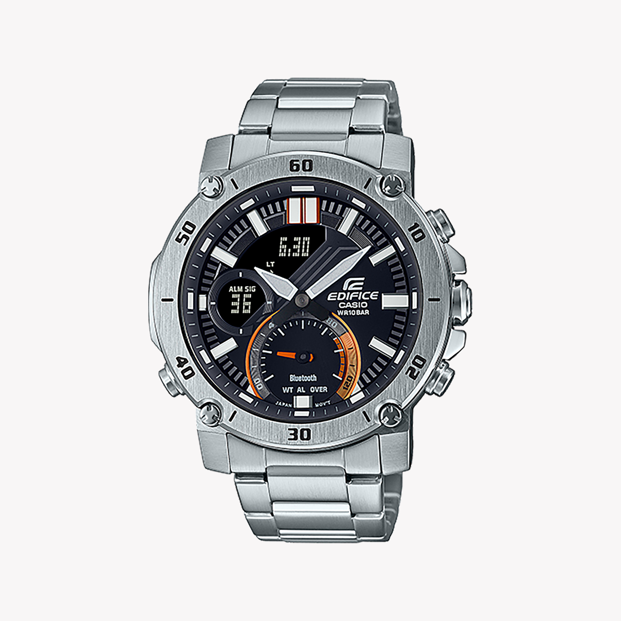 CASIO EDIFICE ECB-20D-1ADF - MONTRE POUR HOMMES ÉLÉGANCE SPORTIVE AVEC BANDE EN ACIER INOXYDABLE ET CADRAN NOIR