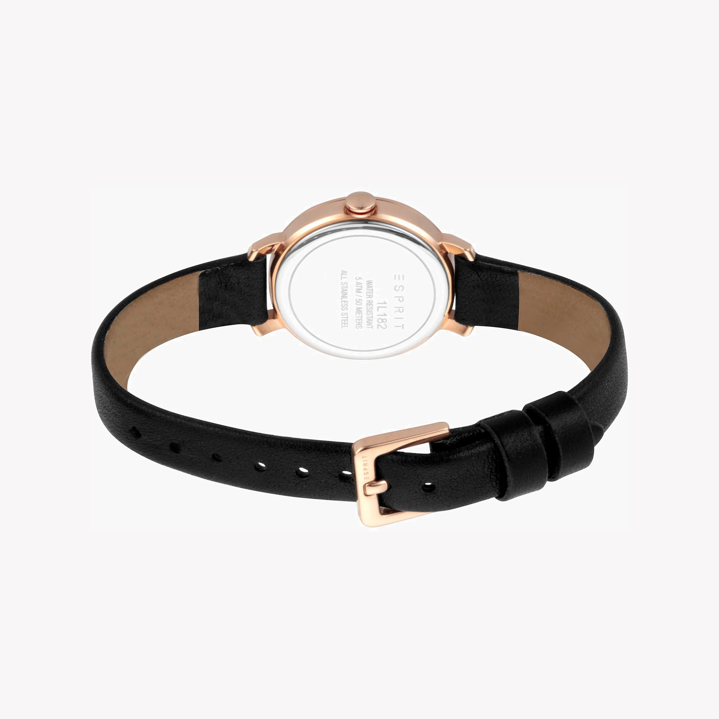 Montre ESPRIT pour femme avec boîtier en acier inoxydable or rose et bracelet en cuir noir