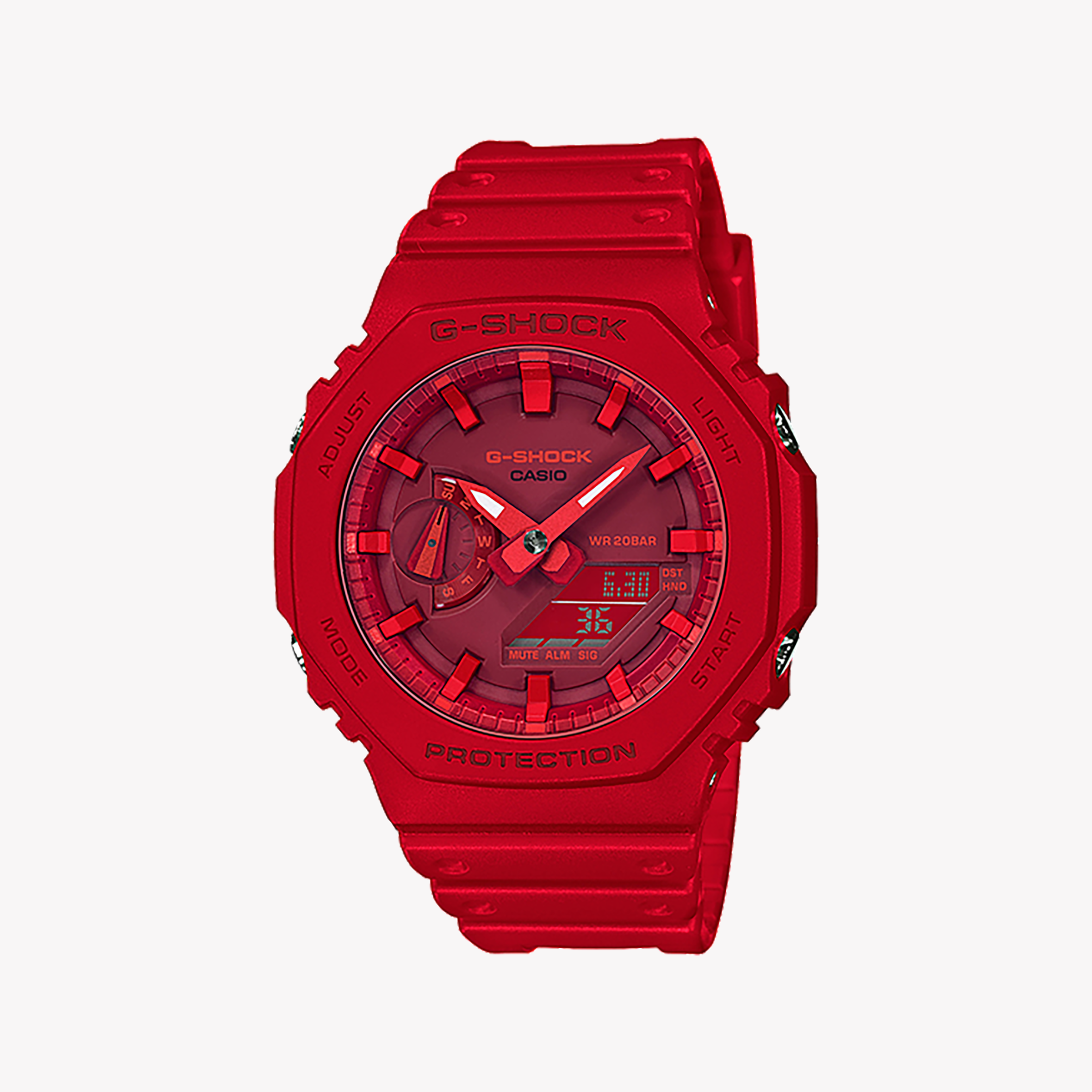 Découvrez l'élégance sportive avec la montre G-SHOCK GA-2100-4ADR. Cette montre rouge vif est dotée d'un mouvement à quartz fiable, d'une résistance à l'eau de 200 m et de fonctions pratiques pour toutes les occasions.