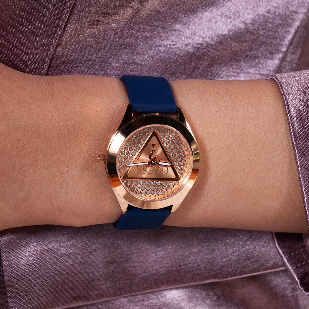 GUESS GW0745L4 ROSE GOLD RADIANCE - MONTRE CHIC POUR FEMME AVEC BANDE EN SILICONE BLEU