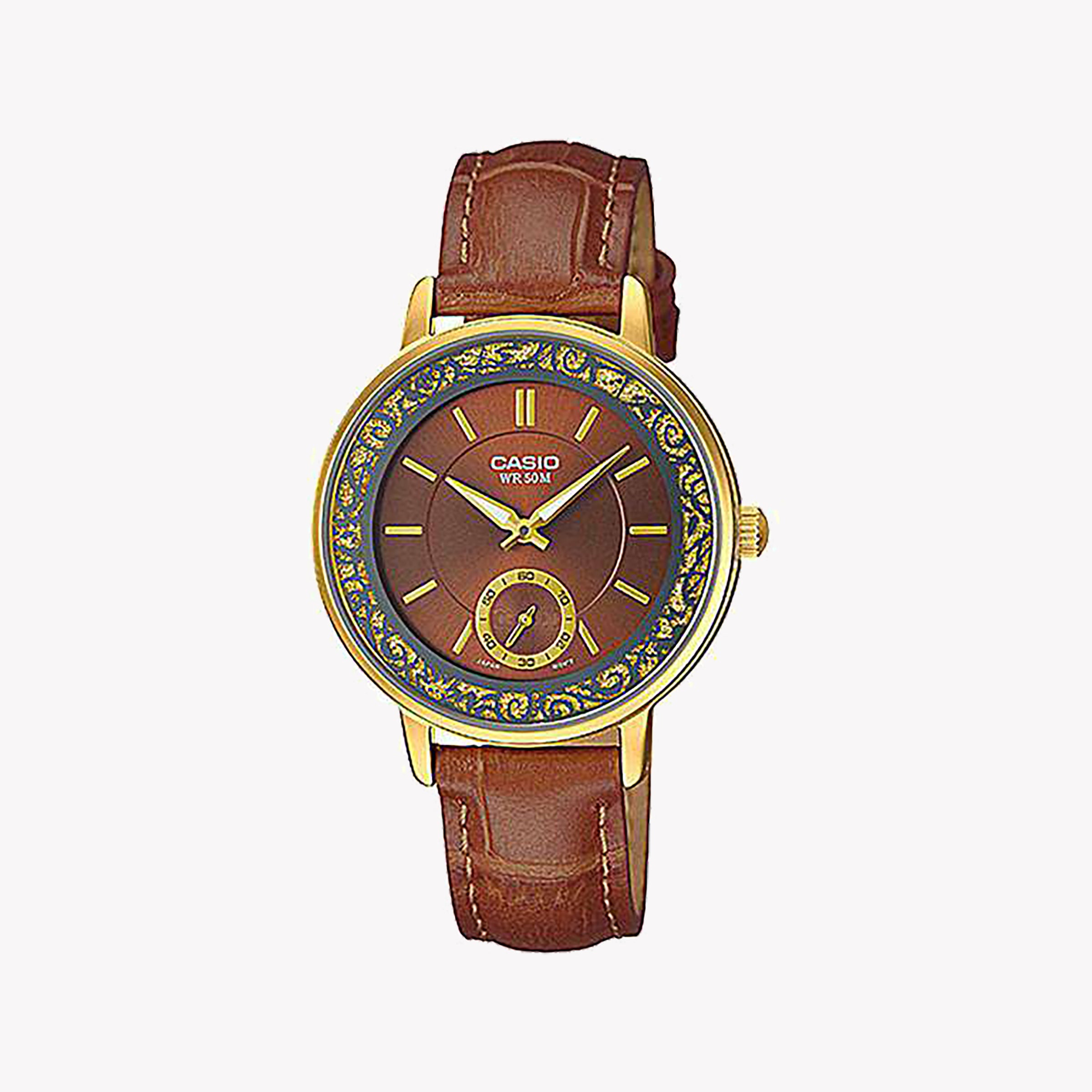 LTP-E408GL-5AVDF - MONTRE DE DAME ÉLÉGANTE EN OR AVEC BRACELET EN CUIR DE LUXE