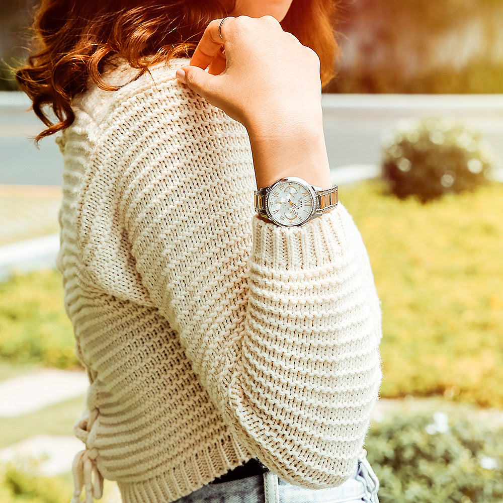 - Confort et style : Le bracelet en acier inoxydable combine des tons argentés et dorés, offrant un ajustement à la fois à la mode et confortable pour un usage quotidien — parfait pour passer sans effort du travail aux loisirs.
