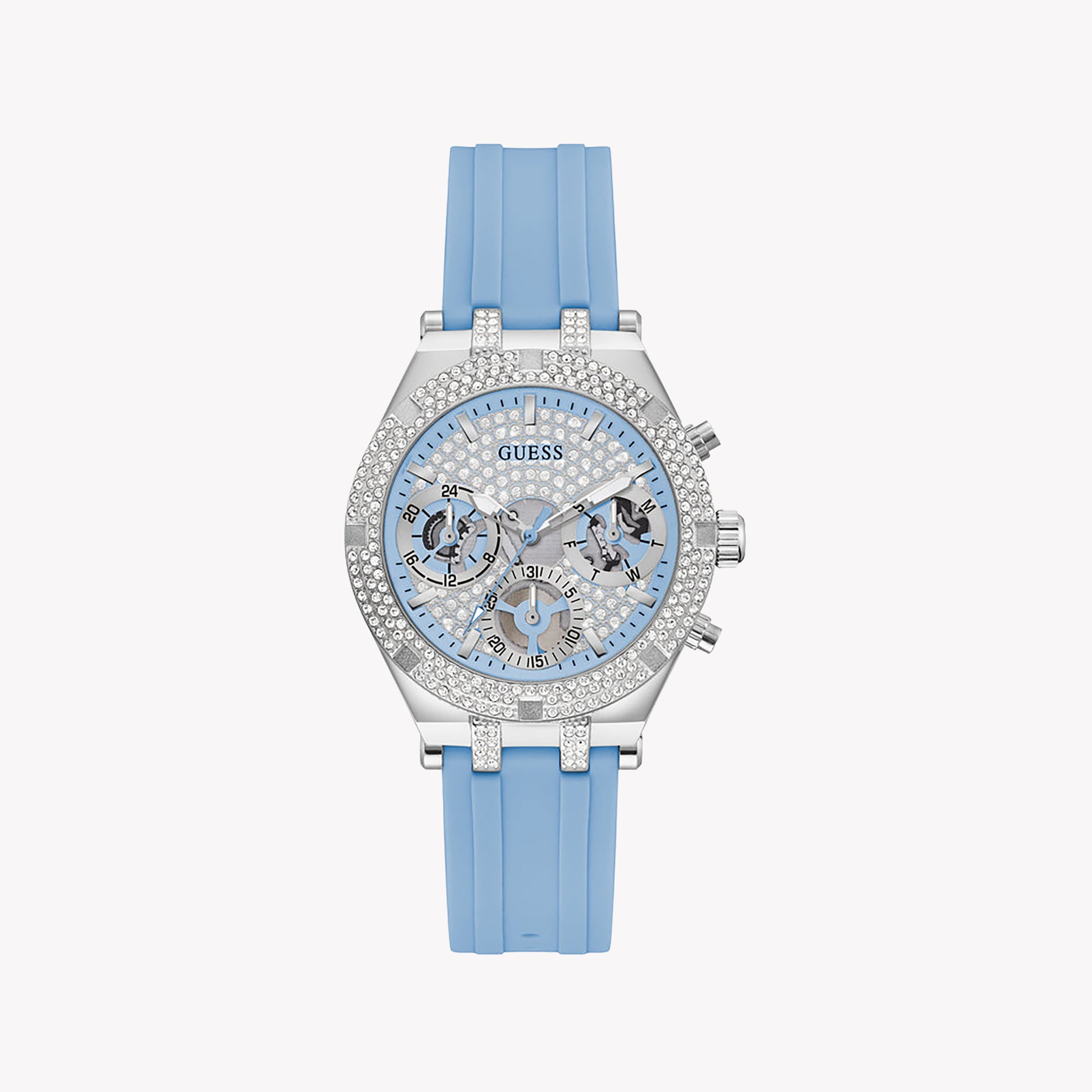 GUESS GW0407L1 CHARMING VIBRANCE - MONTRE FEMME ÉLÉGANTE AVEC BANDE EN SILICONE BLEU CLAIR