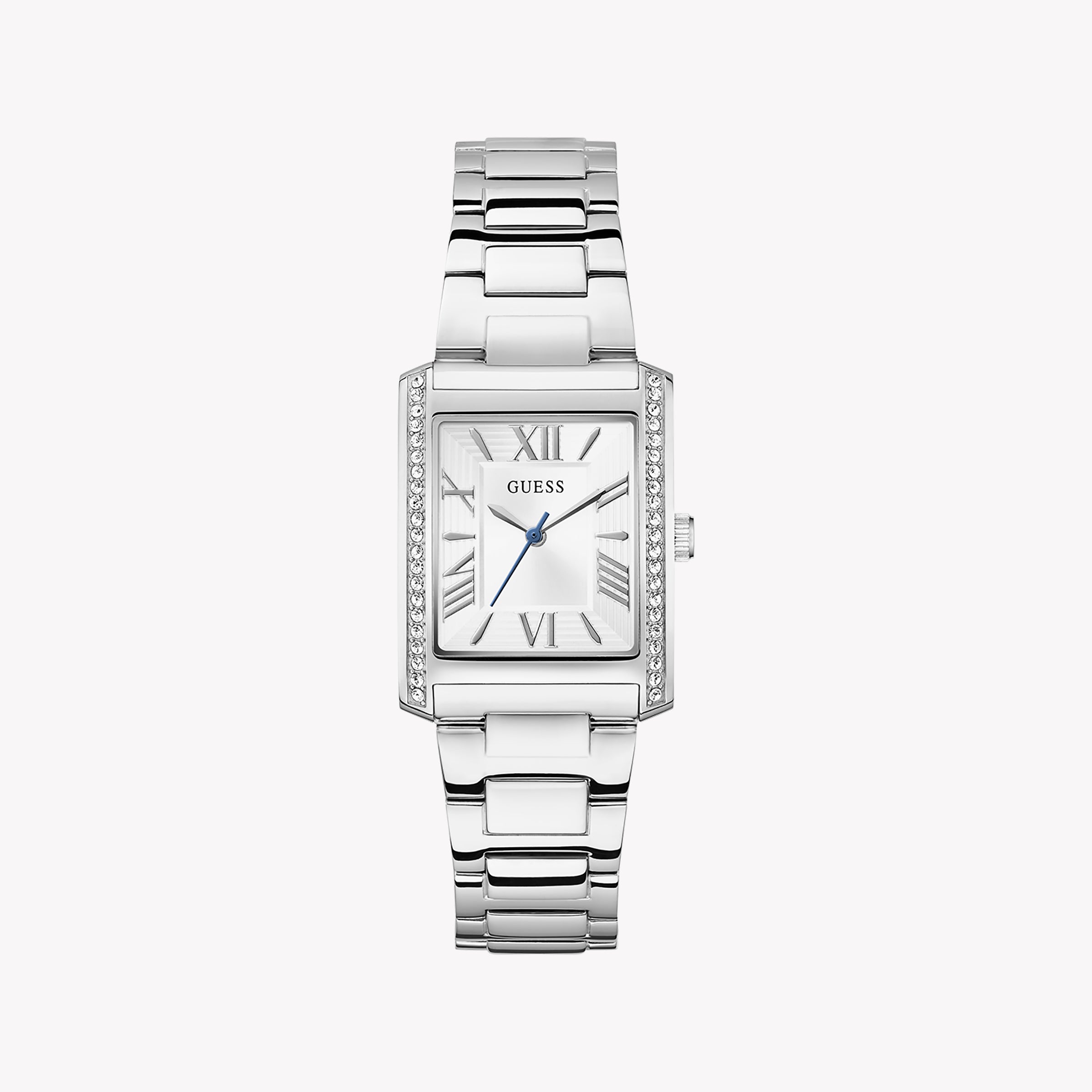 The GUESS Women's GW0874L1 is an elegant timepiece crafted for sophistication. Featuring a sleek silver dial and durable stainless steel band, this brand's watch offers style and precision. Perfect for women seeking a chic, versatile accessory.