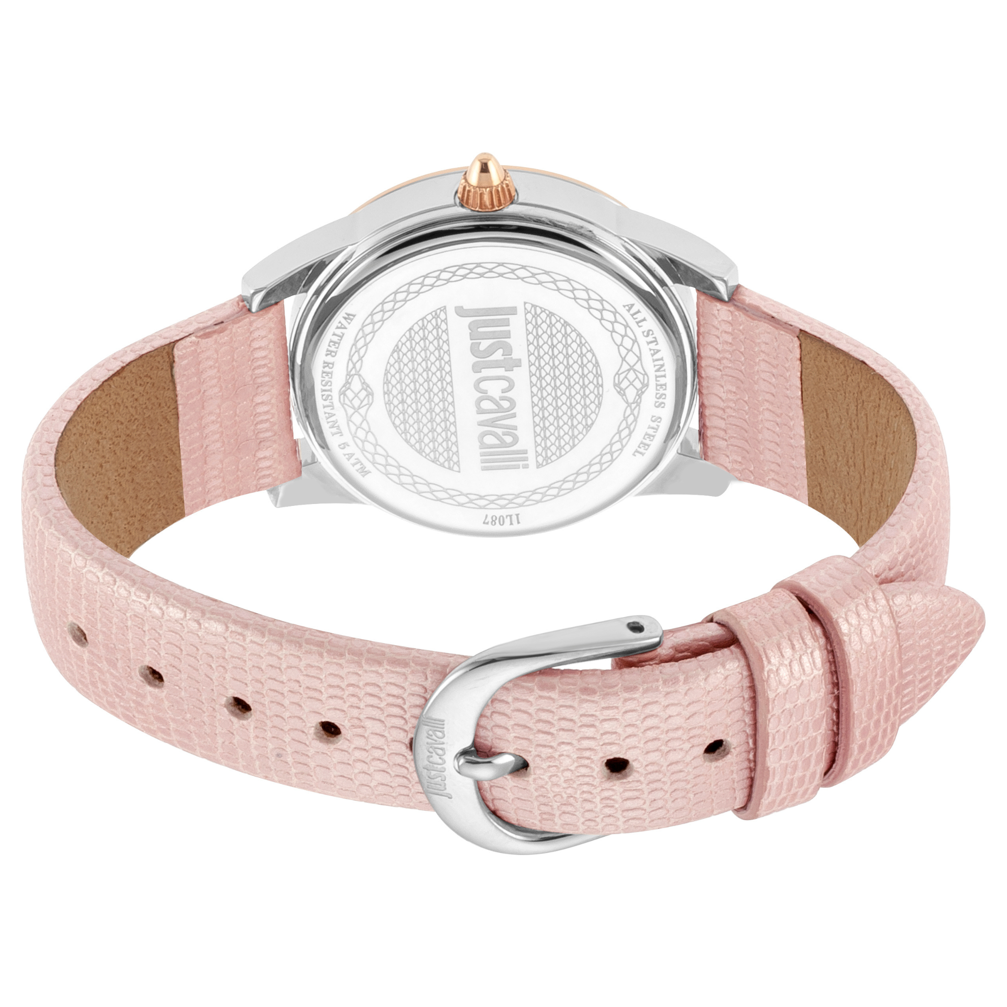 Montre pour femme JUST CAVALLI avec boîtier en acier inoxydable argenté et bracelet en cuir rose