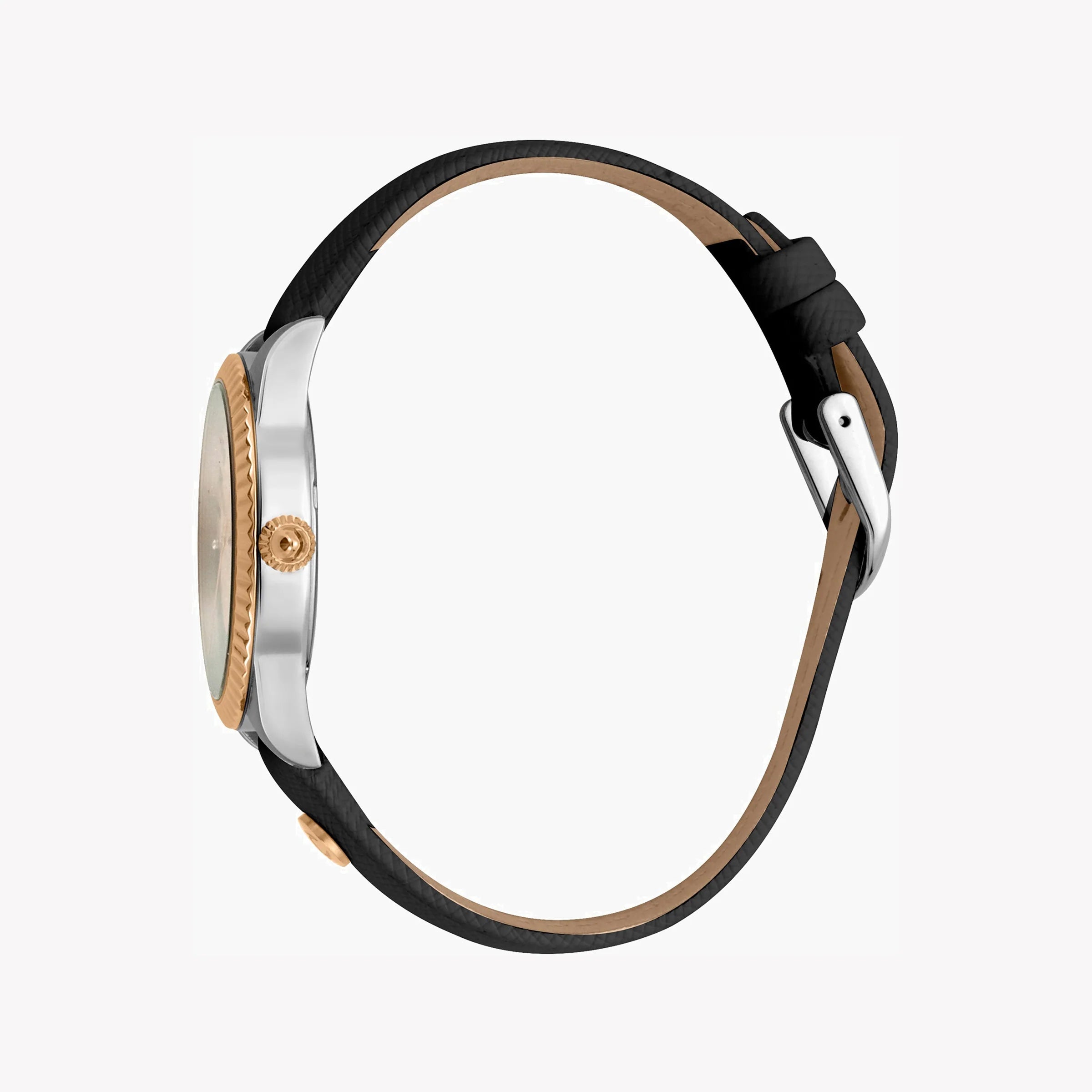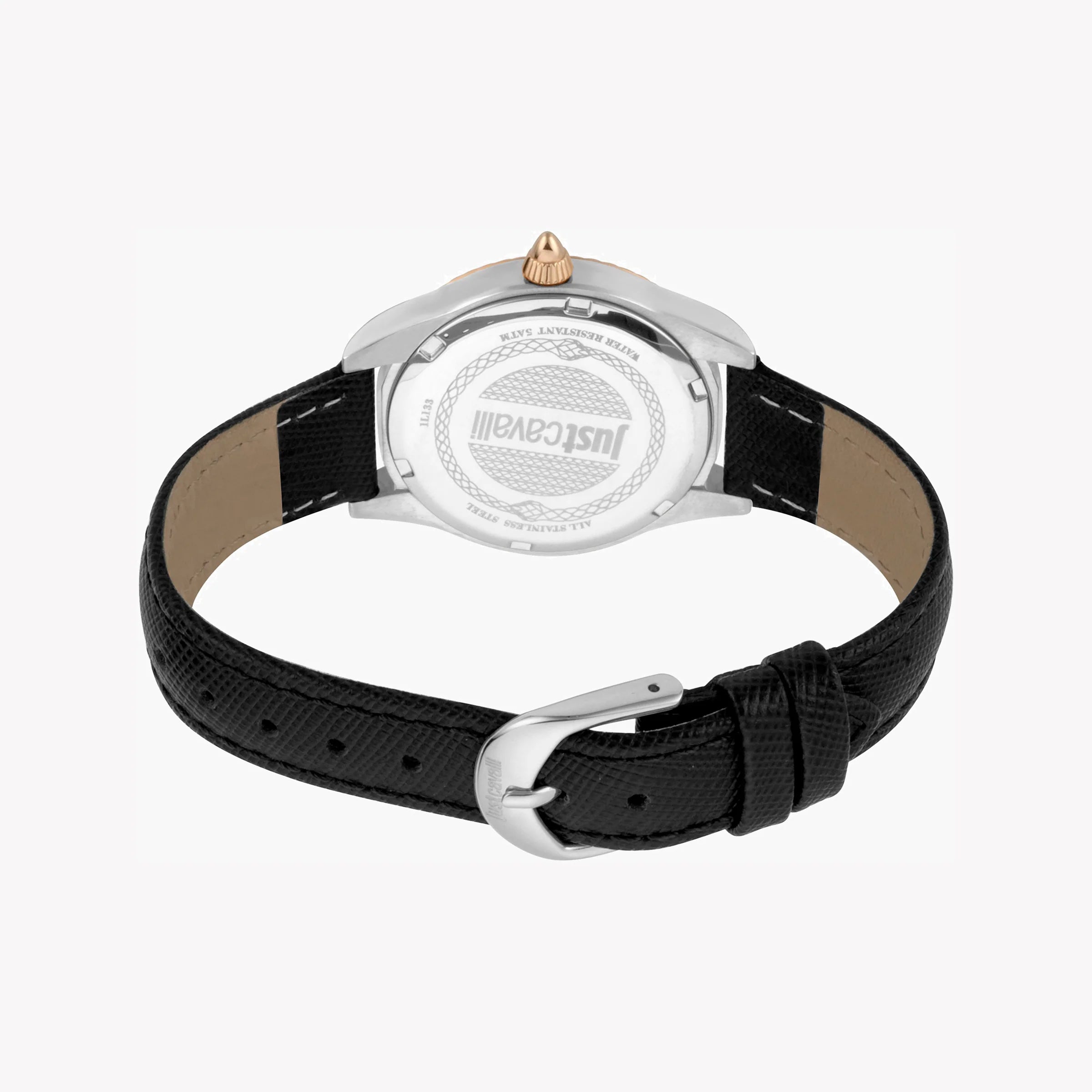 Intemporelle, sophistiquée, élégante. Cette montre pour femme Just Cavalli a tout pour plaire. Du bracelet en cuir noir au boîtier rond en acier inoxydable argenté de 34 mm de diamètre et bien sûr à l'élégant cadran en or rose, cette montre est la représentation parfaite de la sophistication ultime.