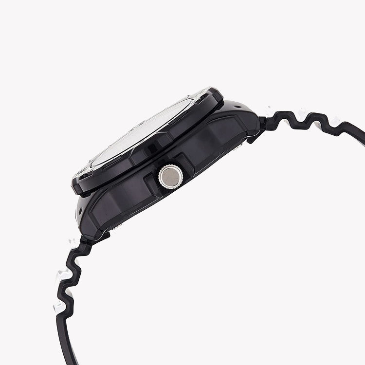 - Construction Robuste : Fabriquée en résine durable, le boîtier et le bracelet offrent un confort et une résilience durables. Le verre minéral fournit une couche de protection supplémentaire, gardant votre montre en impeccable état.