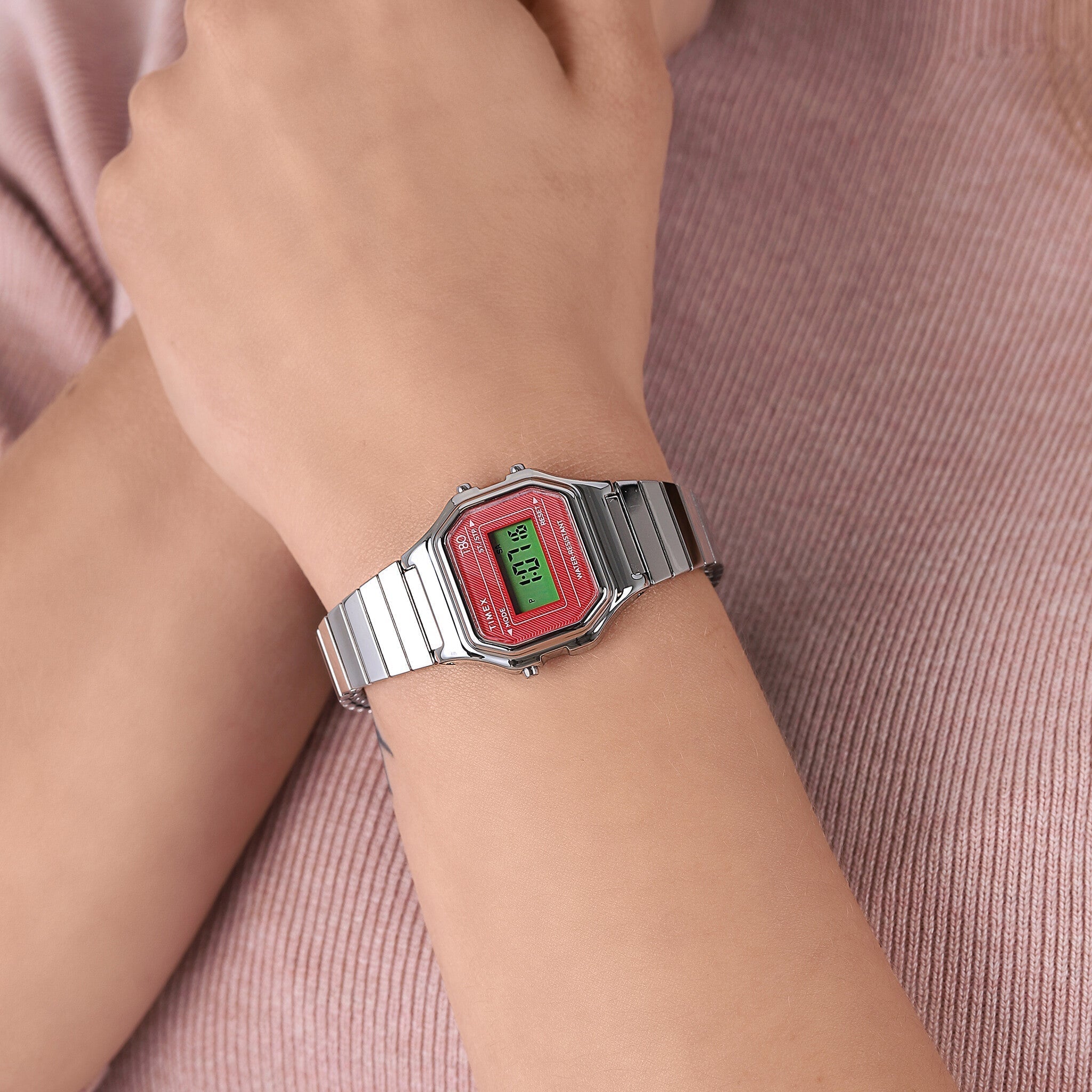 Nous connaissons tous la valeur du temps. Mais il ne s'agit pas de combien vous en gagnez, mais de combien vous en avez. Comment utilisez-vous votre temps ? Timex souhaite être votre partenaire pour la vie, nous avons donc créé une montre qui correspond à votre style avec un look original conçu avec savoir-faire et détail. Avec un bracelet en acier inoxydable argenté et un cadran numérique, elle est fabriquée en résine, ce qui la rend très durable et fiable. Elle possède un boîtier en résine asymétrique argenté d'un diamètre de 27 mm et bien sûr, elle est équipée de l'INDIGLO Night-Light avec mode nuit, ce qui en fait une excellente montre pour n'importe quelle occasion.