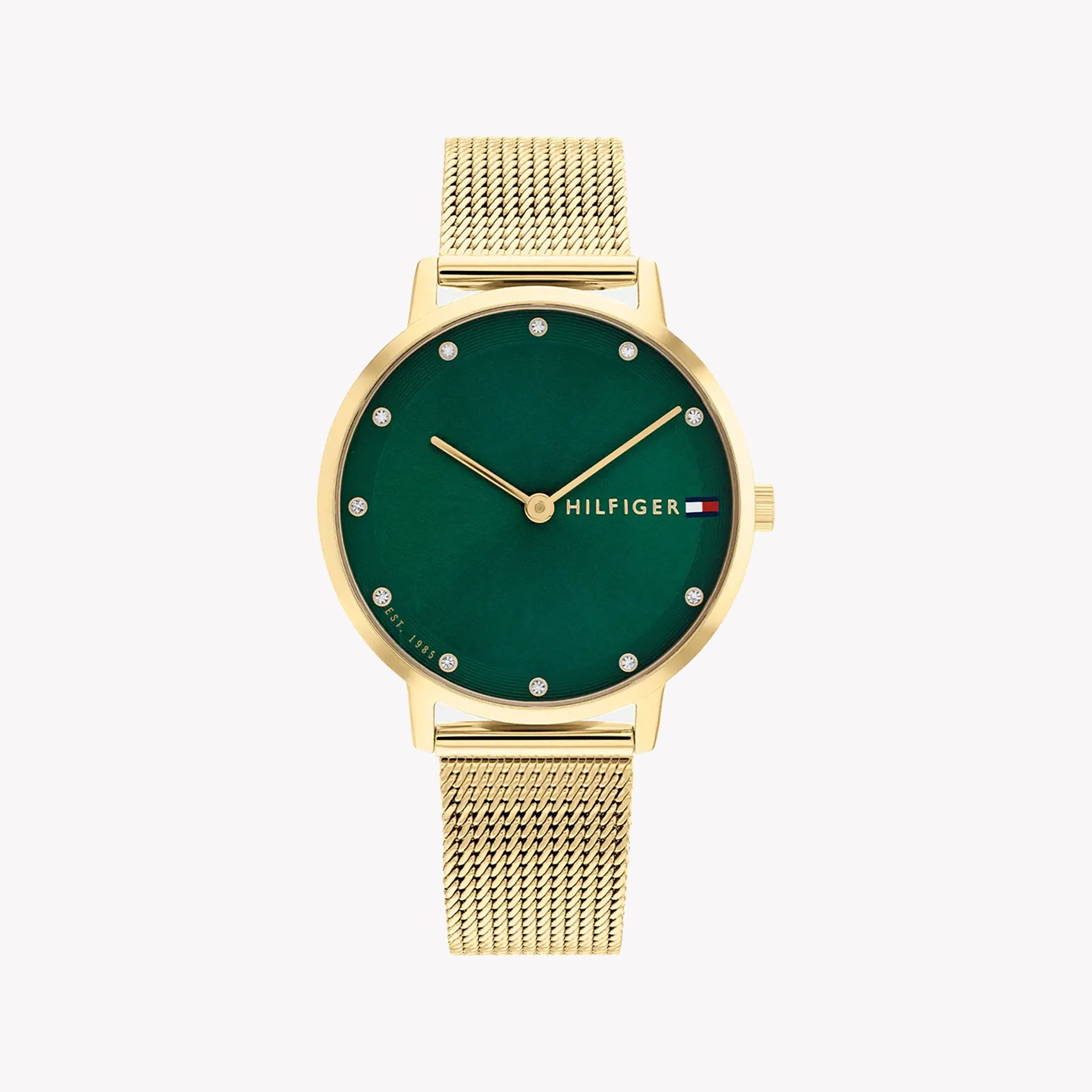 TOMMY HILFIGER 1687490 GOLDEN ELEGANCE - Montre pour femme avec cadran vert et bracelet en acier inoxydable