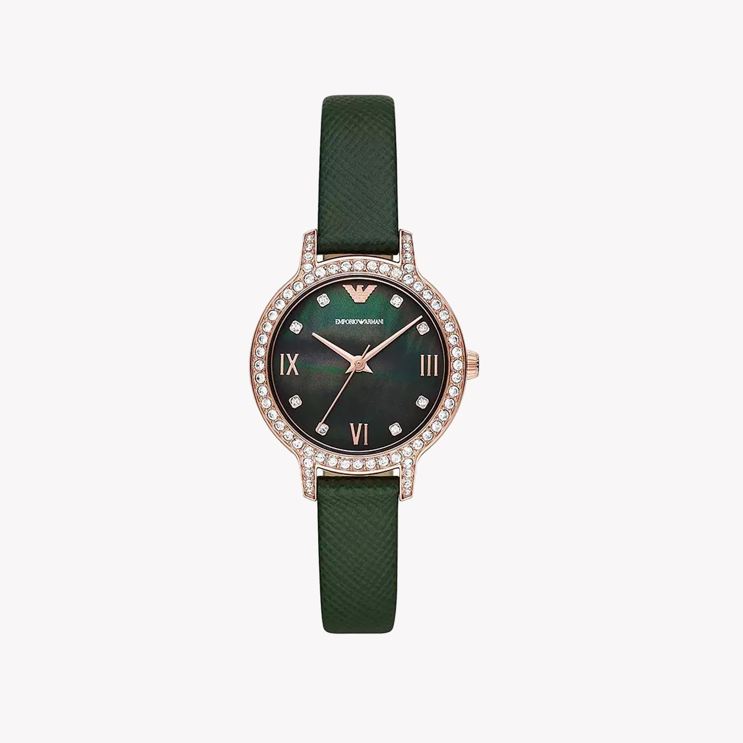 Montre pour femme EMPORIO ARMANI avec boîtier en acier inoxydable or rose et bracelet en cuir vert