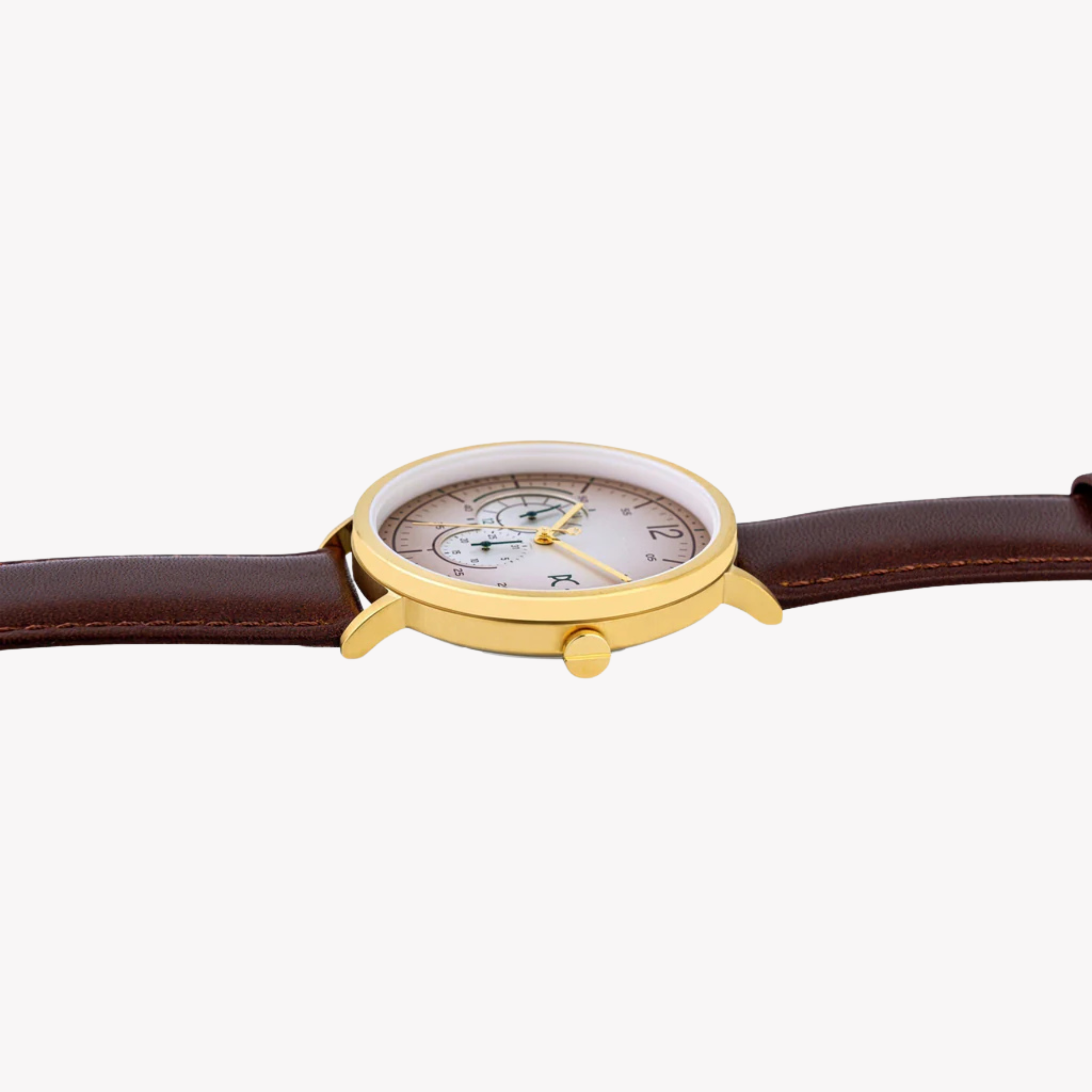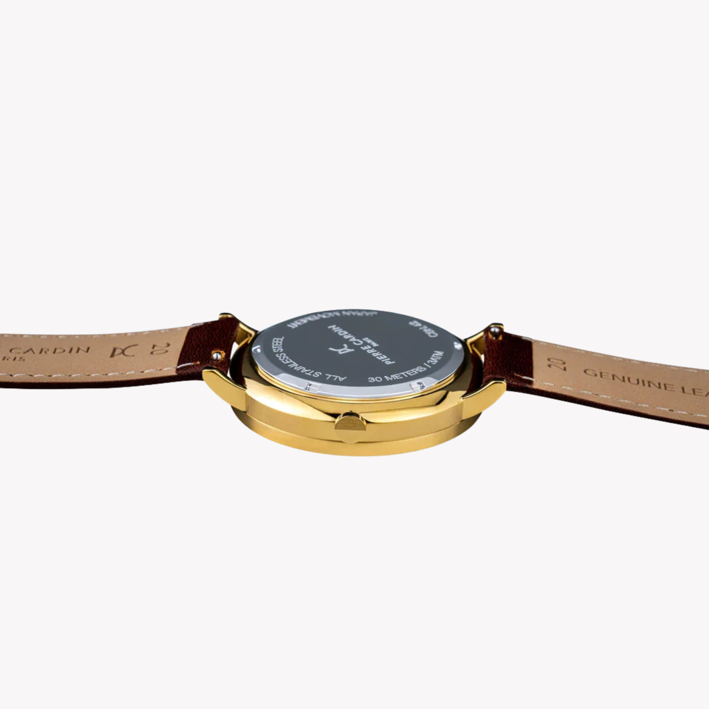 PIERRE CARDIN CBN.3022 MONTRE HOMME ÉLÉGANTE EN ACIER INOXYDABLE DORÉ - BANDE DE CUIR MARRON