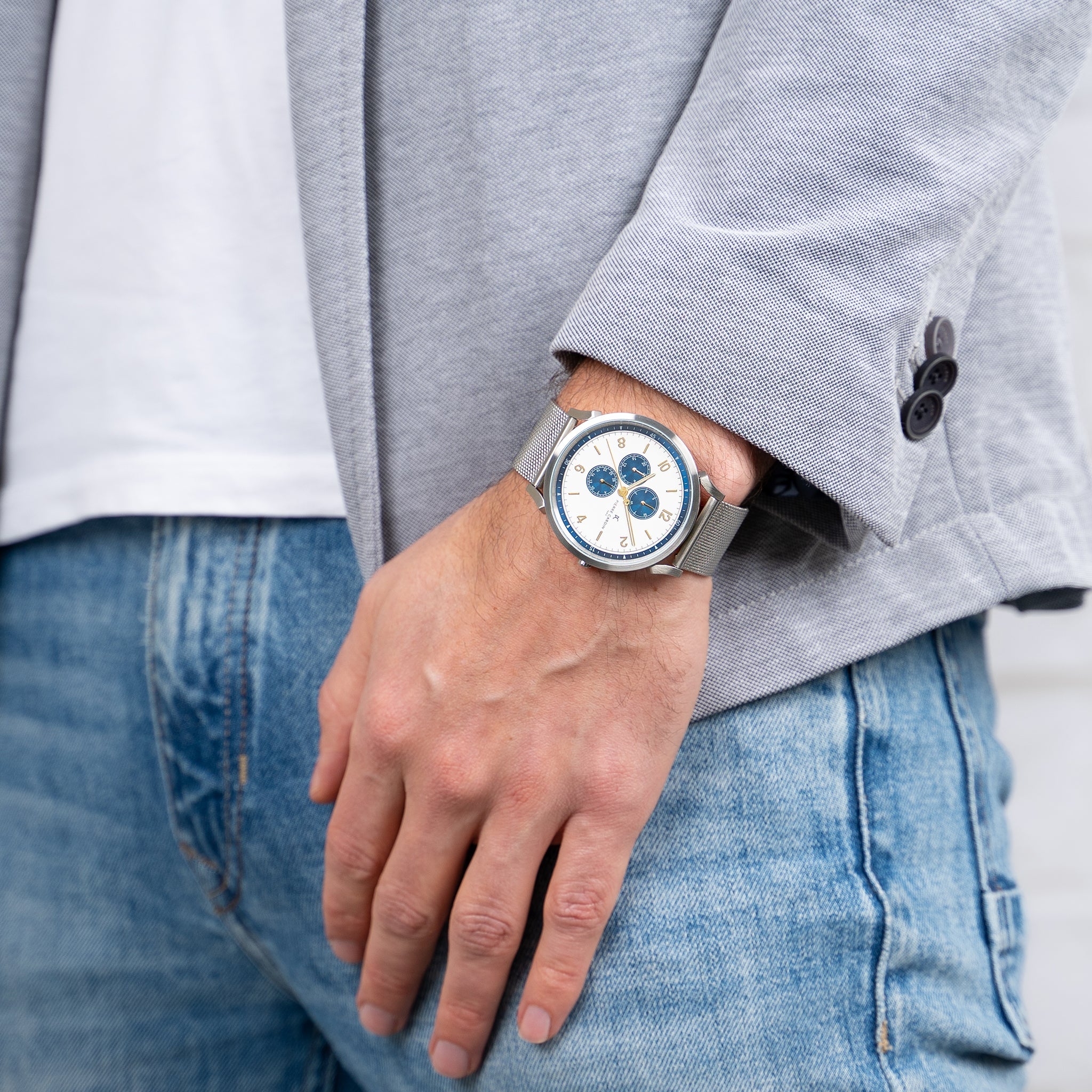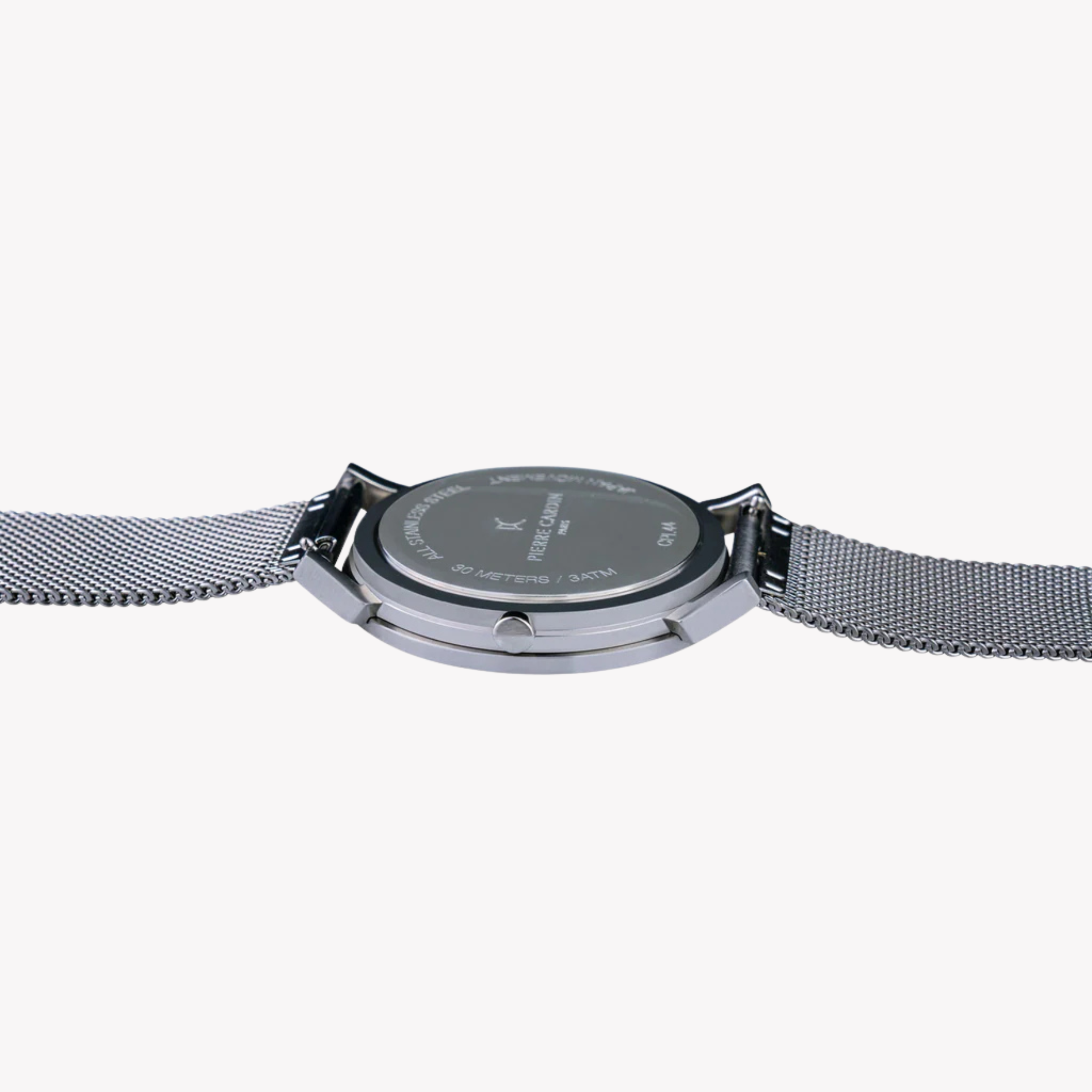 Une montre élégante et au look luxueux, la montre Pierre Cardin avec un boîtier rond en acier inoxydable rose doré présente un bracelet en acier inoxydable argenté et un cadran argenté. Avec un diamètre de boîtier de 44 mm, elle sera un excellent ajout à votre tenue.