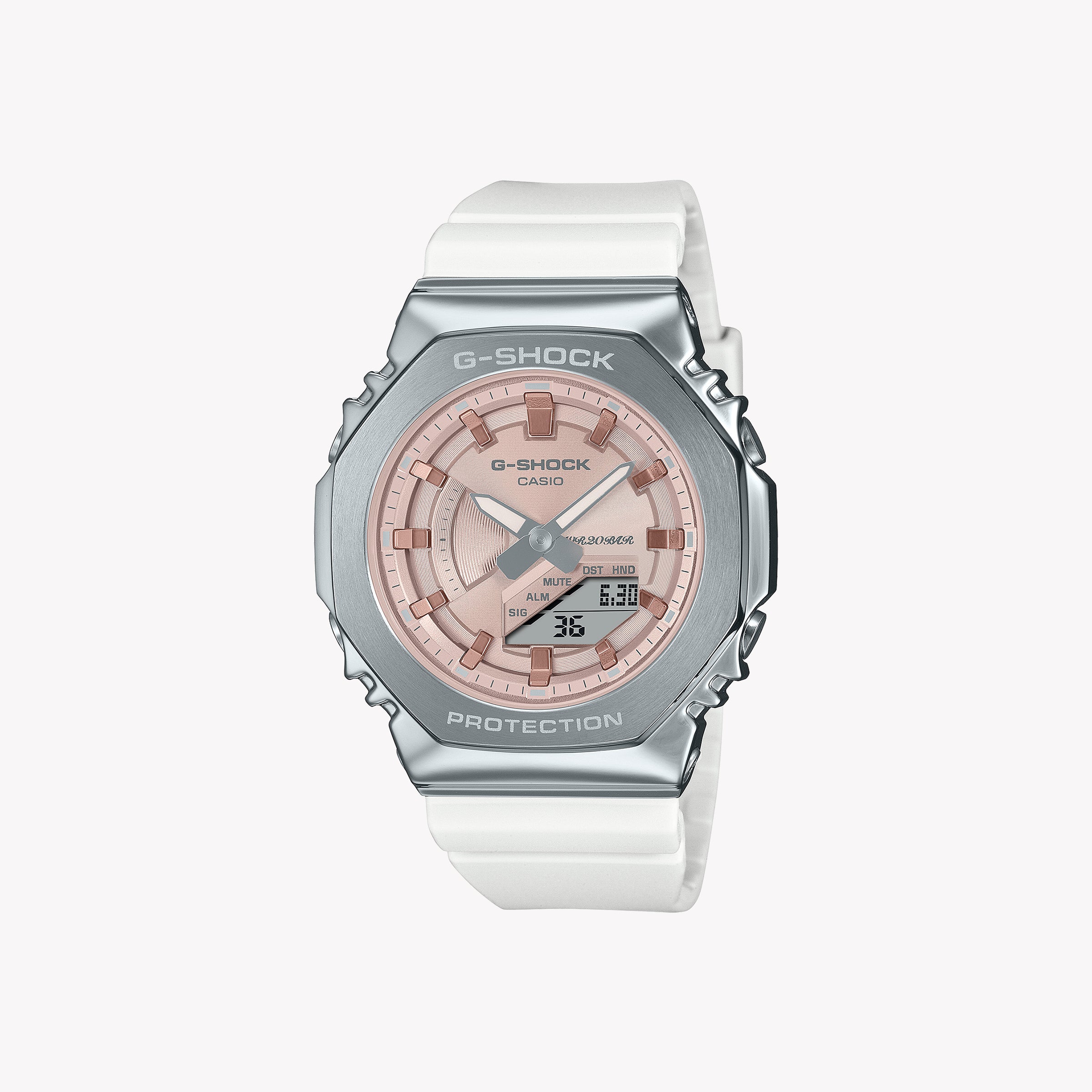 Montre G-Shock pour femme avec boîtier en résine argentée et acier inoxydable et bracelet en résine argentée