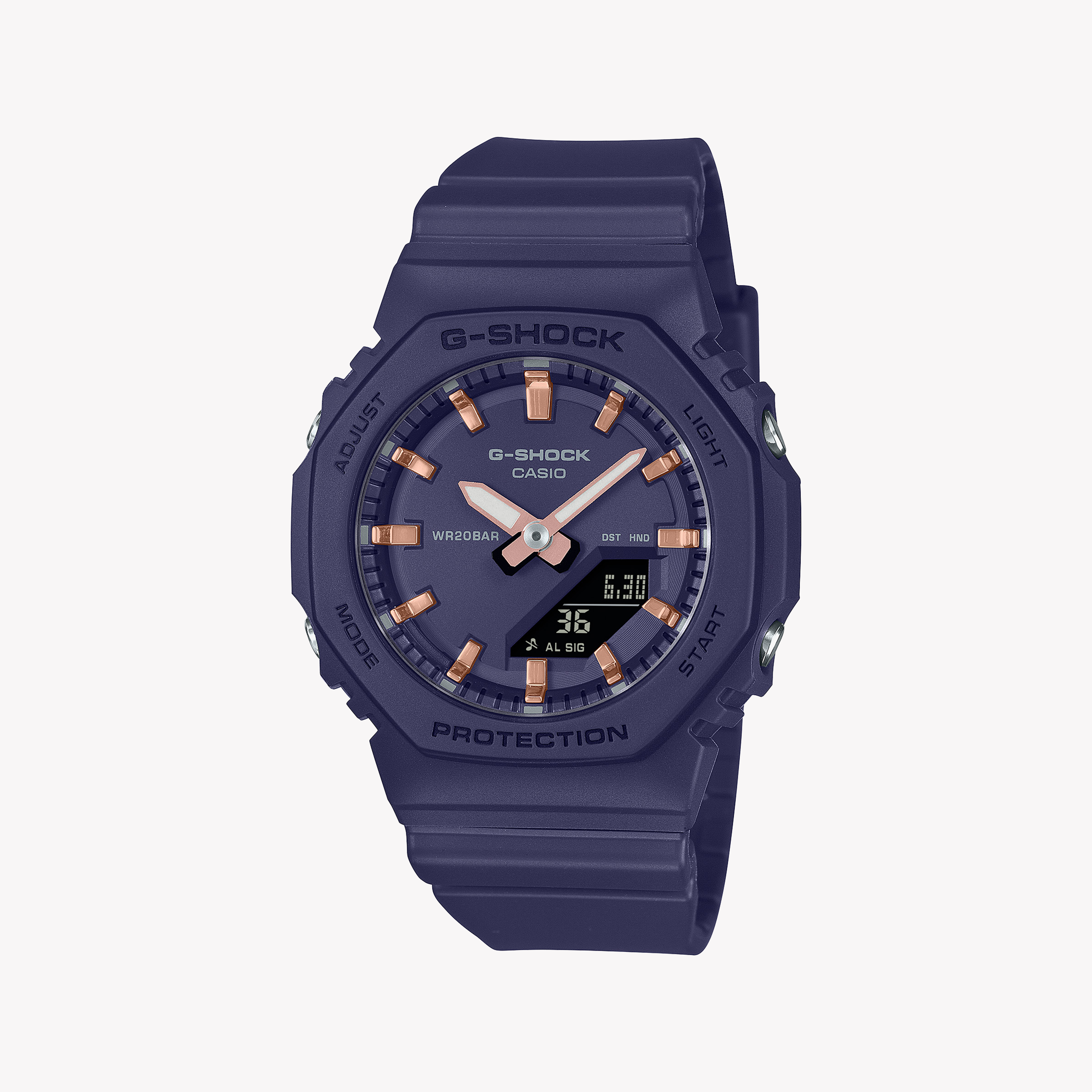 Introducing the CASIO G-SHOCK GMA-P2100M-2AER: a vibrant purple women's watch that blends resilience with style. With robust resin construction and 20 ATM water resistance, this elegant timepiece is perfect for the modern, dynamic woman who values both form and function.