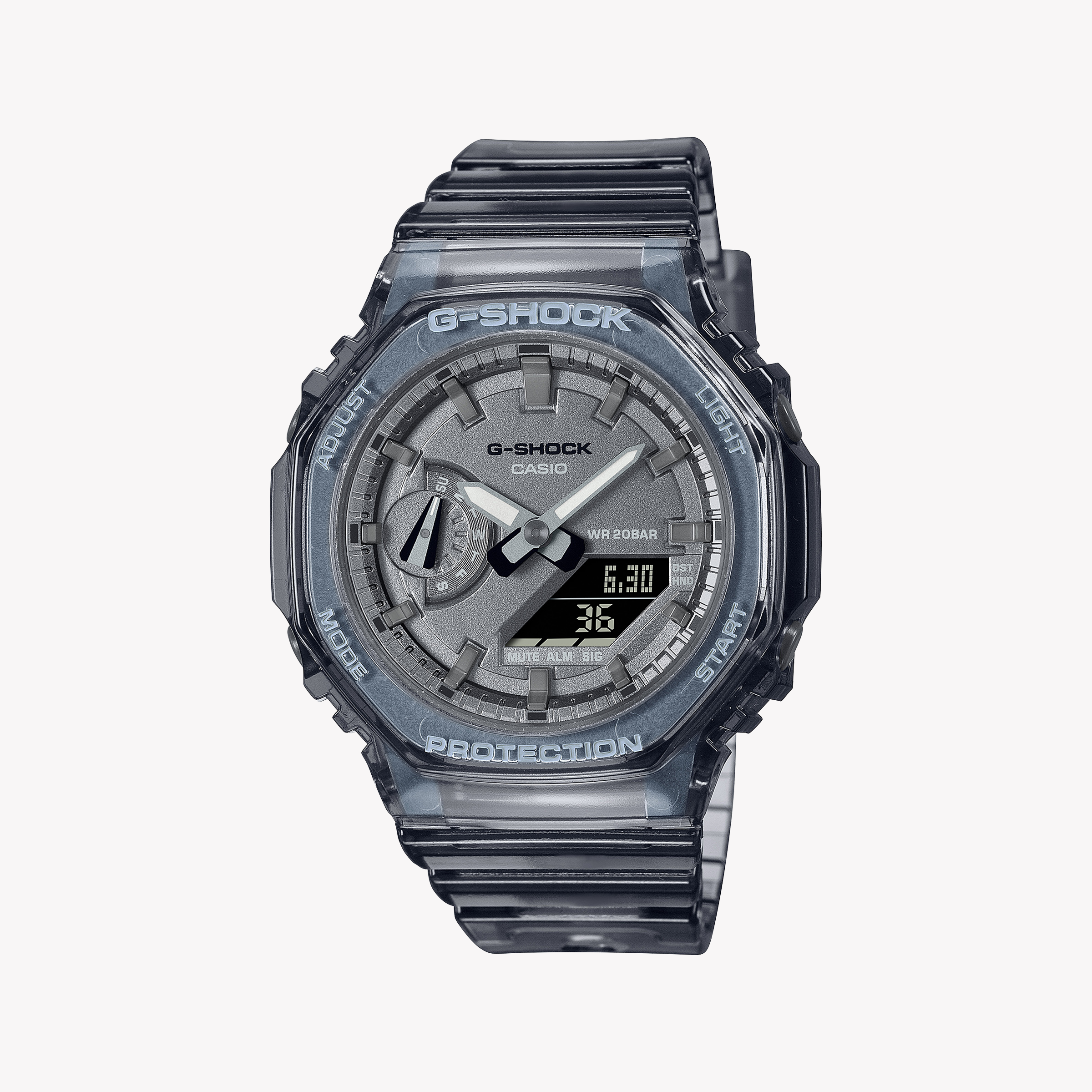 - Design Frappant : Avec son boîtier en résine gris de 44,5 mm et son bracelet gris assorti, la GMA-S2100SK-1ADR dégage une sophistication moderne qui complète parfaitement n'importe quelle tenue.