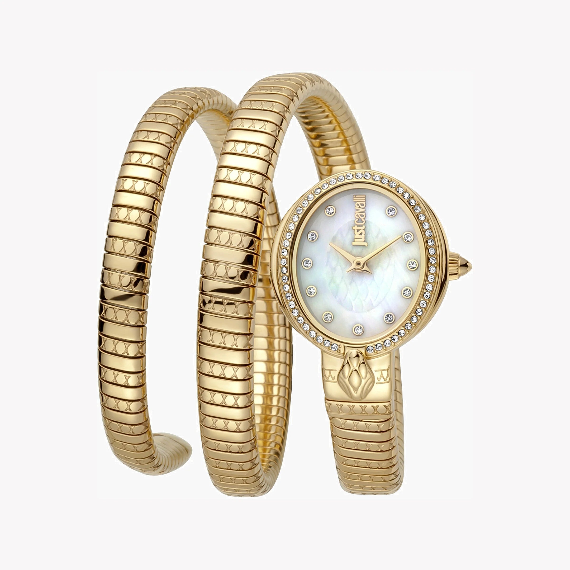 Montre pour femme JUST CAVALLI avec boîtier en acier inoxydable doré et bracelet en acier inoxydable doré