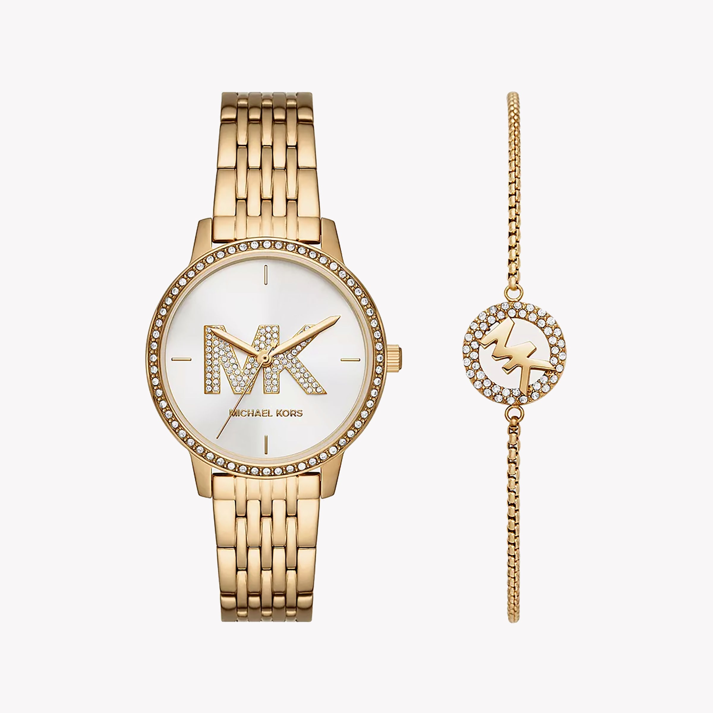 MICHAEL KORS MK1051SET RADIANT FLAIR - MONTRE POUR FEMME ÉLÉGANTE EN OR AVEC CADRAN BLANC