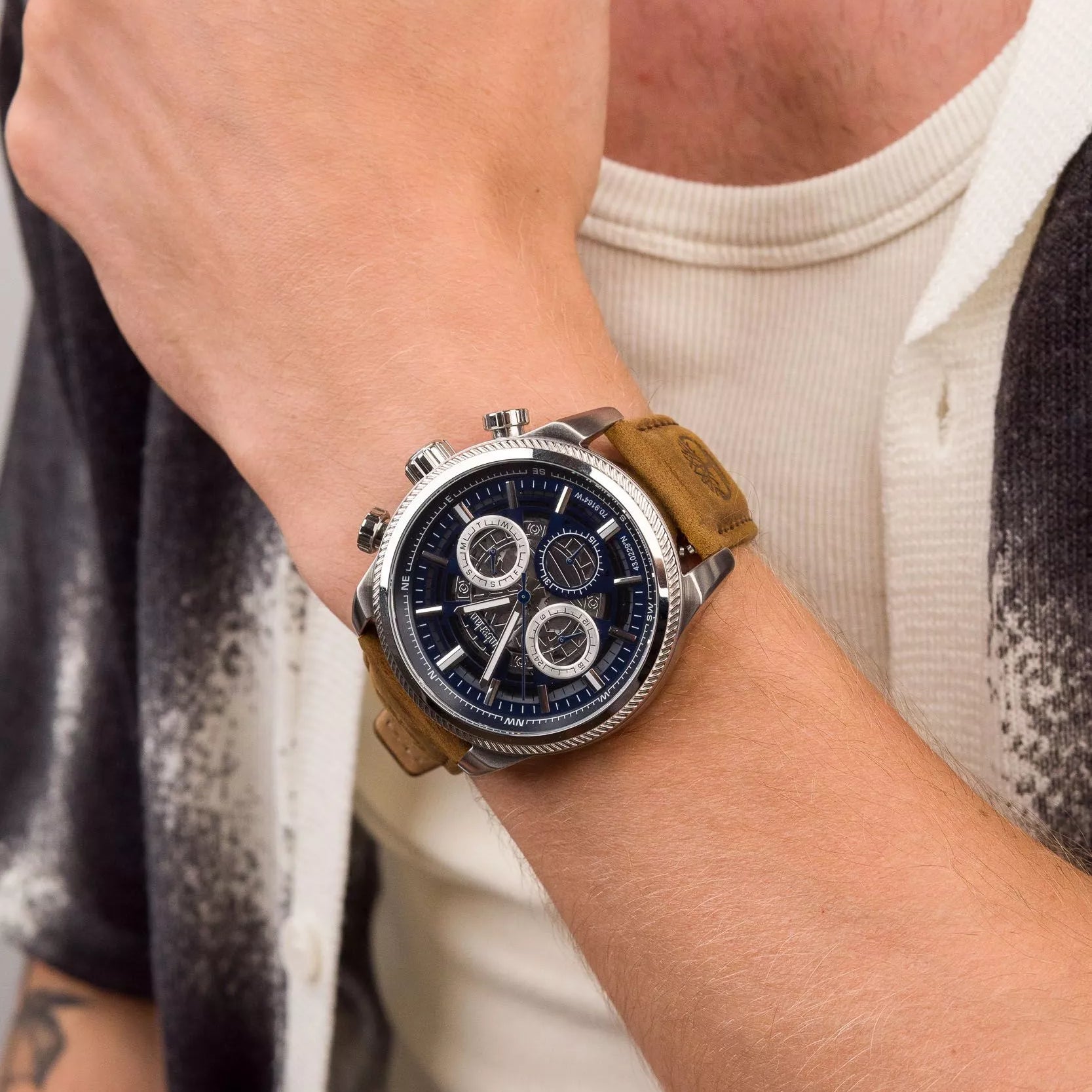 - Ajustement confortable : Le bracelet en cuir brun non seulement améliore l'attrait robuste de la montre, mais garantit également un confort tout au long de la journée, vous permettant de la porter du matin au soir.