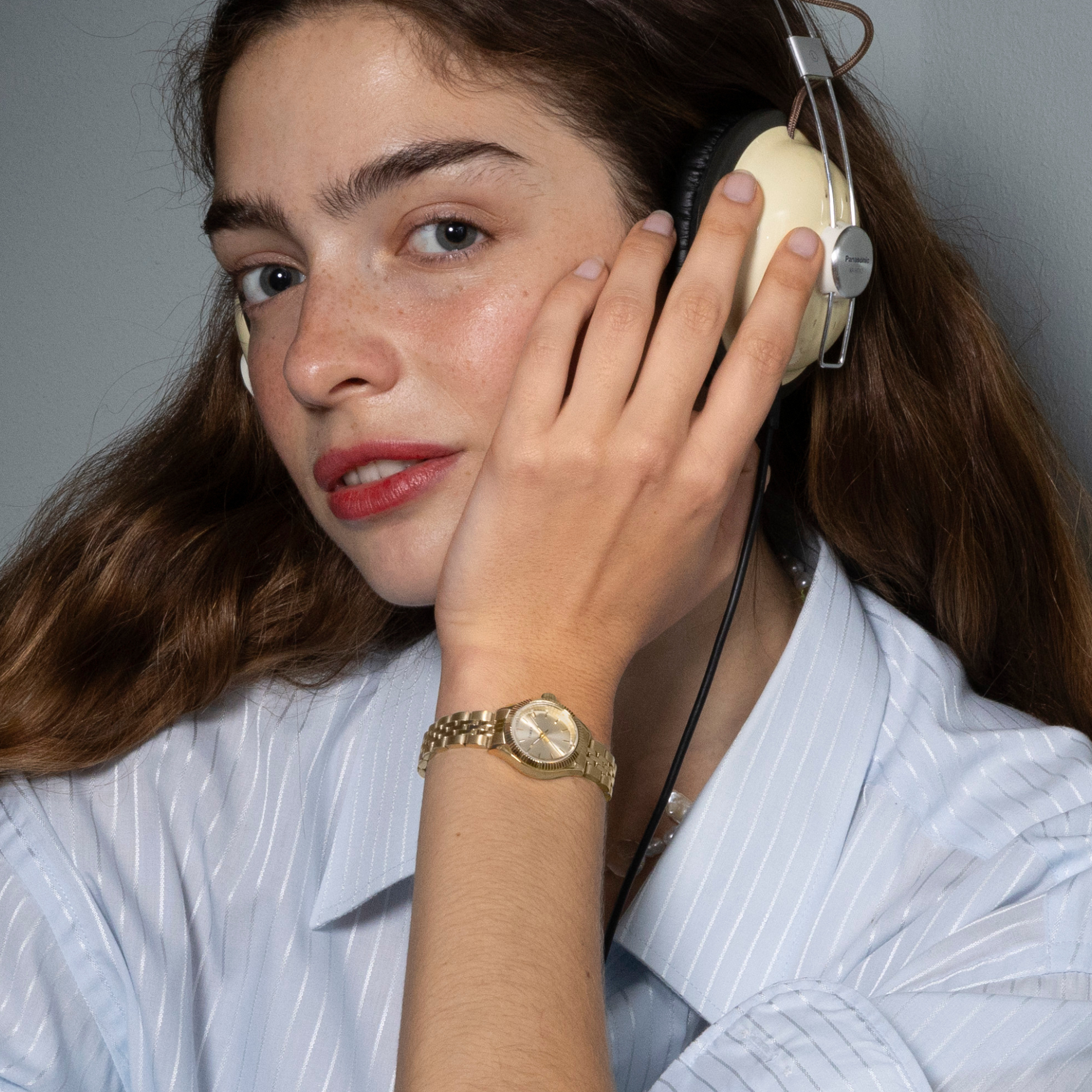 Bold Gold Finish: A stunning gold-tone case, dial, and band create a cohesive and polished appearance, perfect for making a statement.