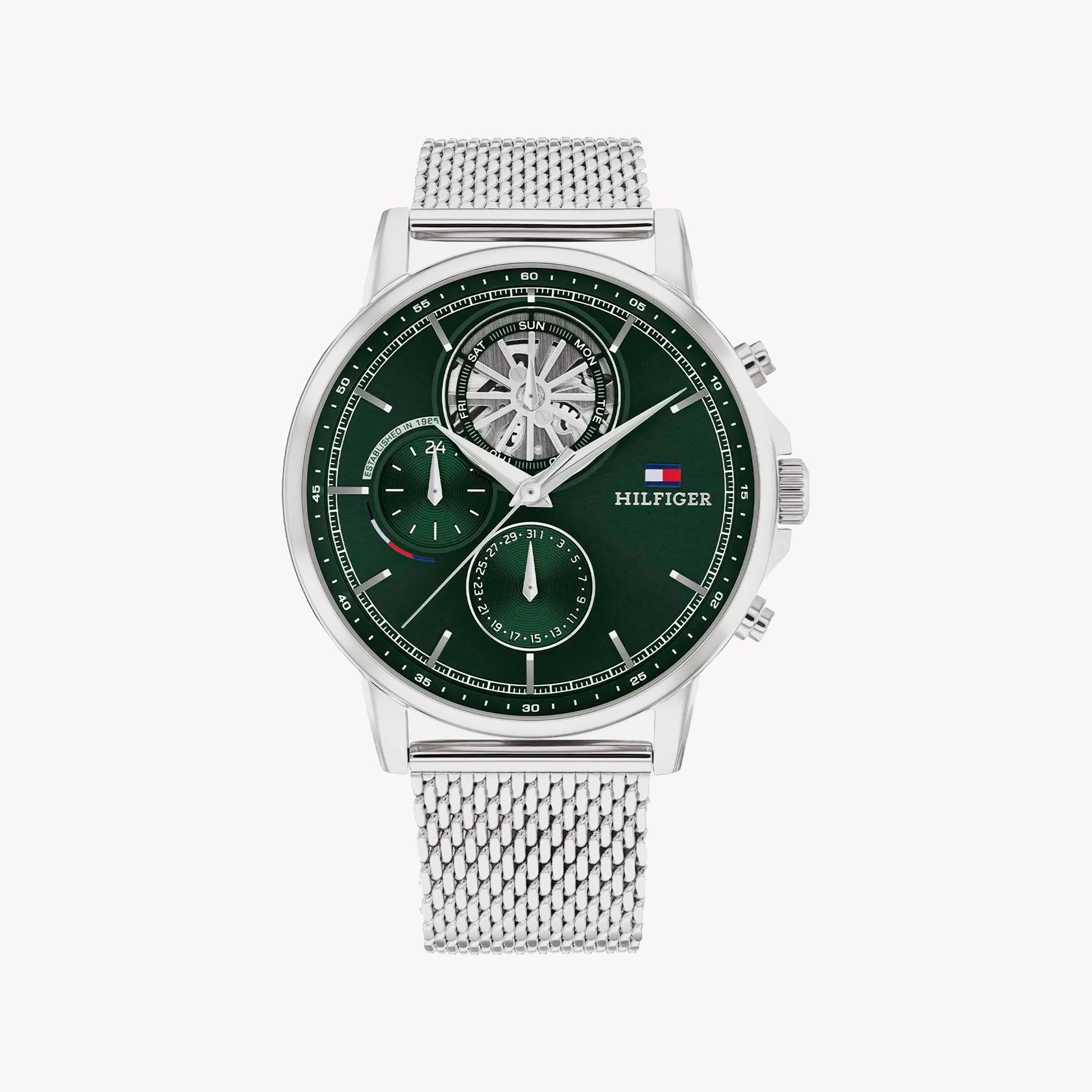 Tommy Hilfiger Men's Silver Watch, Green Dial | 1692157