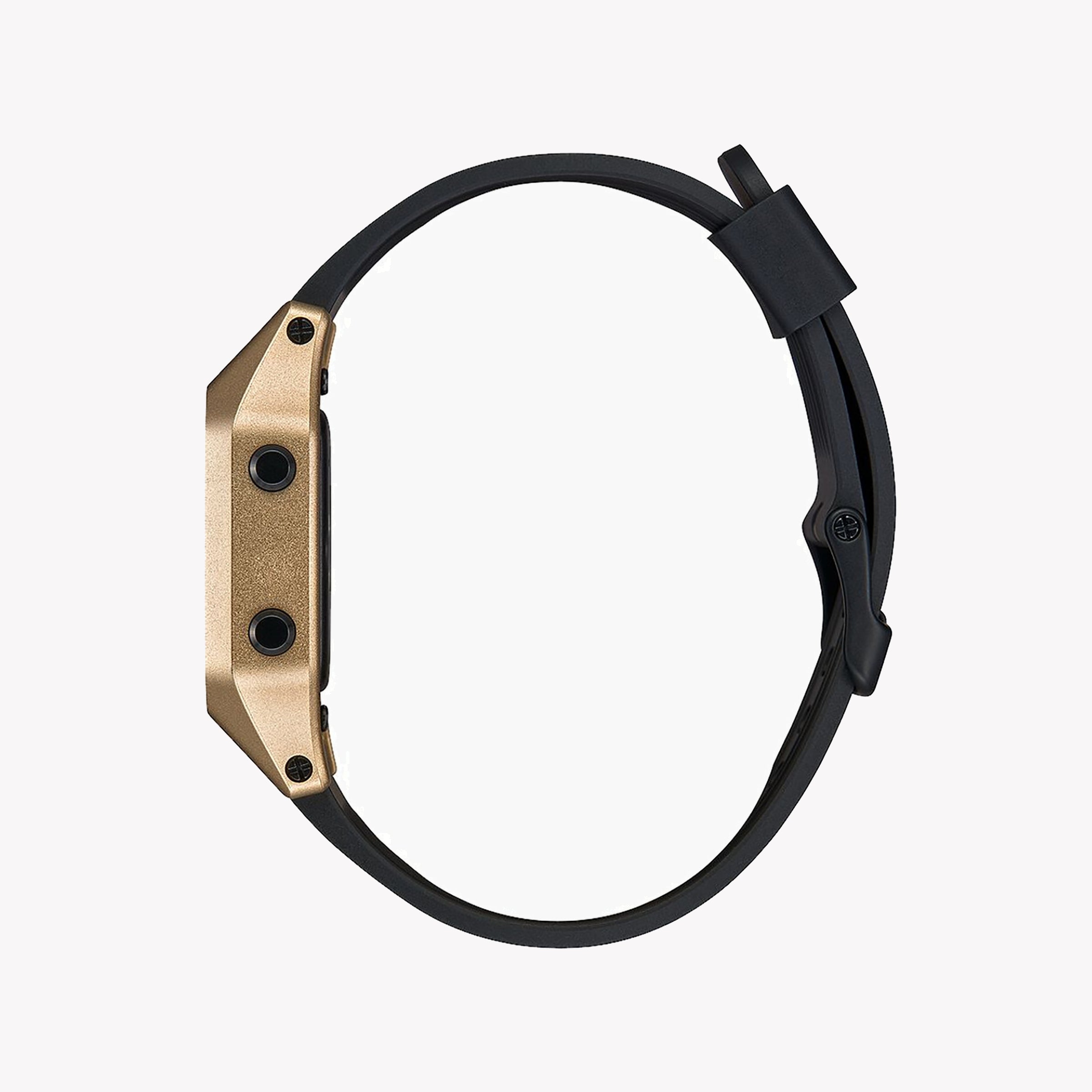 - Striking Aesthetics: The watch showcases a sleek and modern 38 mm gold rubber case that provides a bold contrast to the vibrant black silicone band, ensuring you stand out in any crowd.