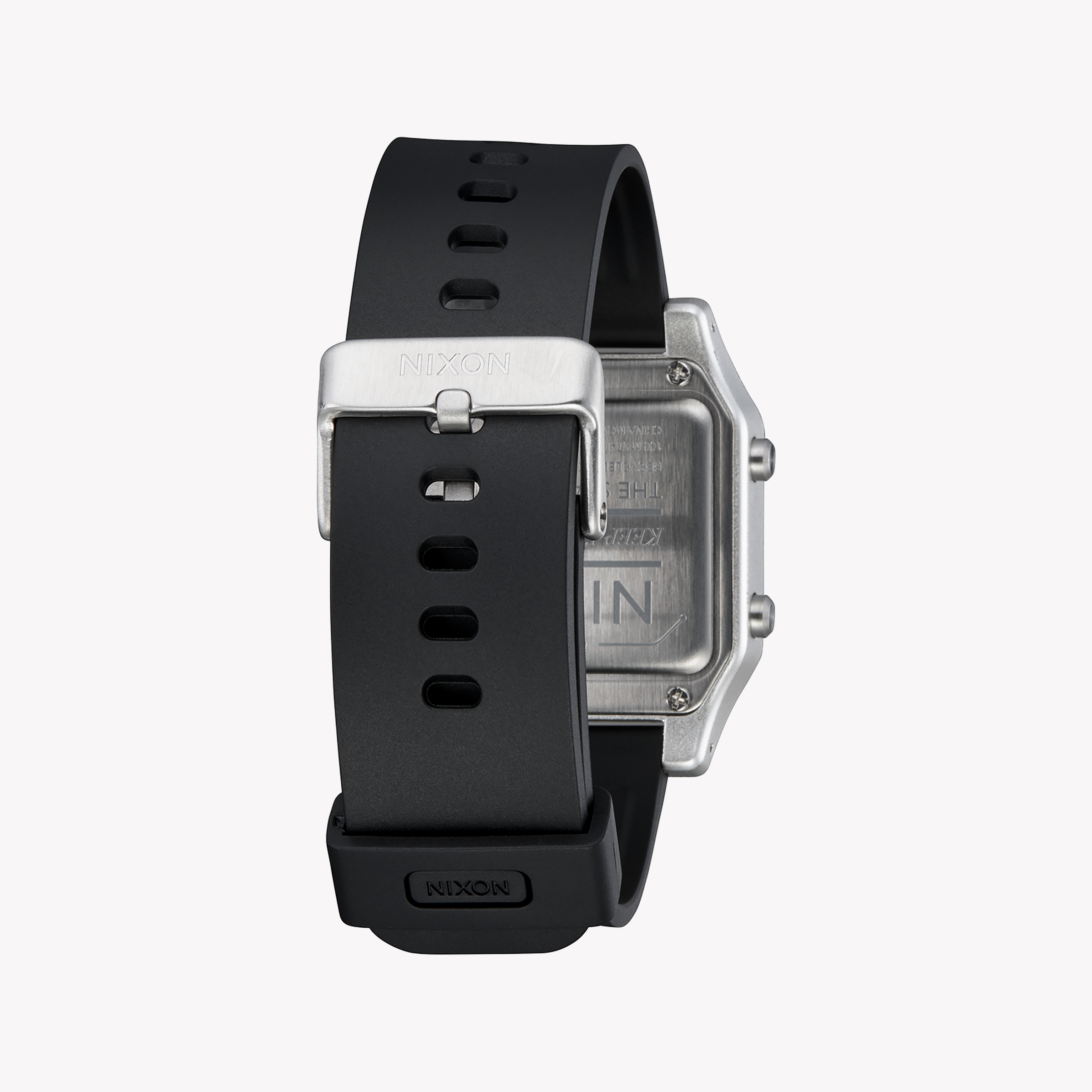 Nixon Men's Black Rubber Watch, Silver Band | A1309-625