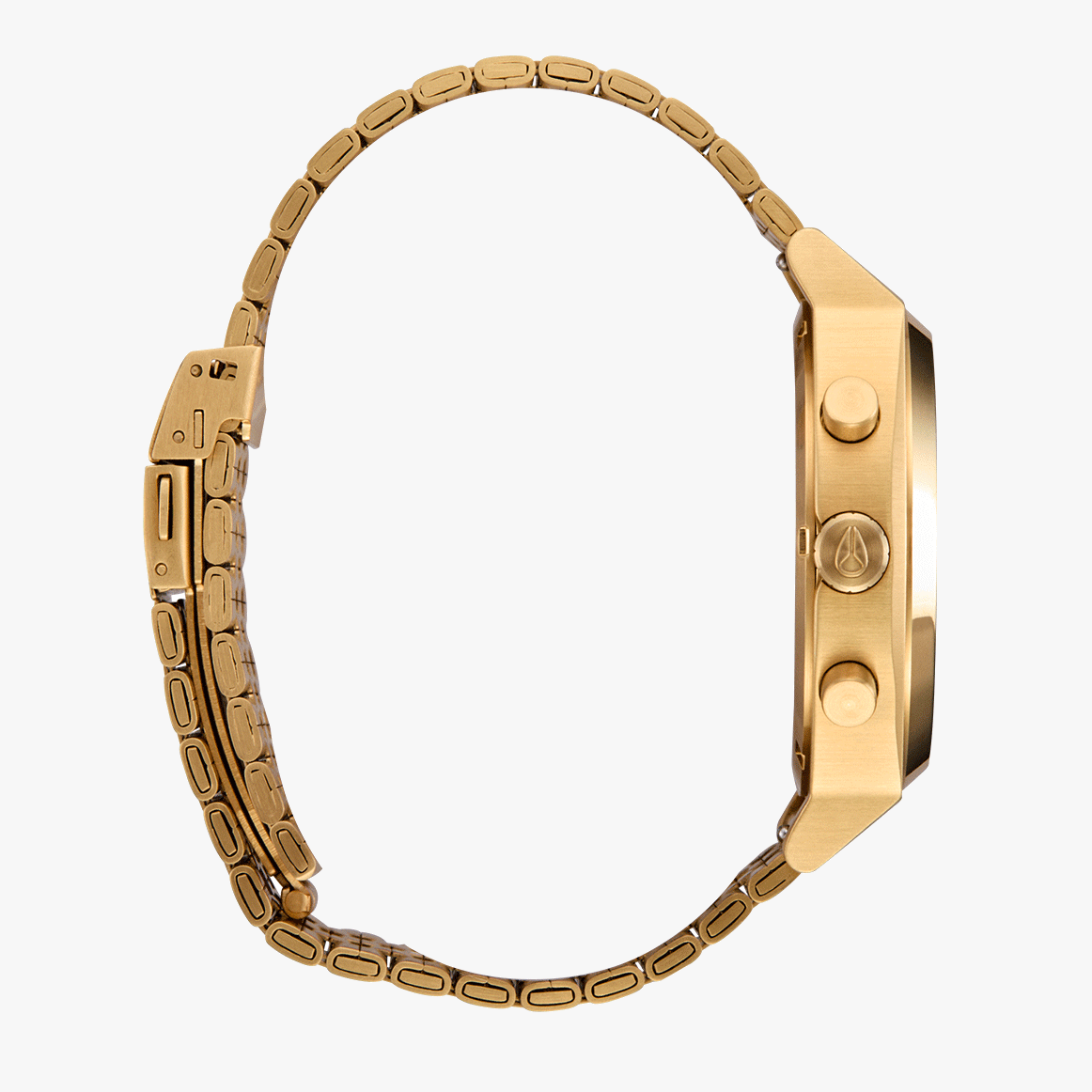 Make a statement with the NIXON A972-5333 Unisex Gold Watch. Its stunning gold stainless steel band and case, paired with a black & gold dial, exudes elegance. Water-resistant to 10 ATM, it's the perfect elegant timepiece for any occasion.