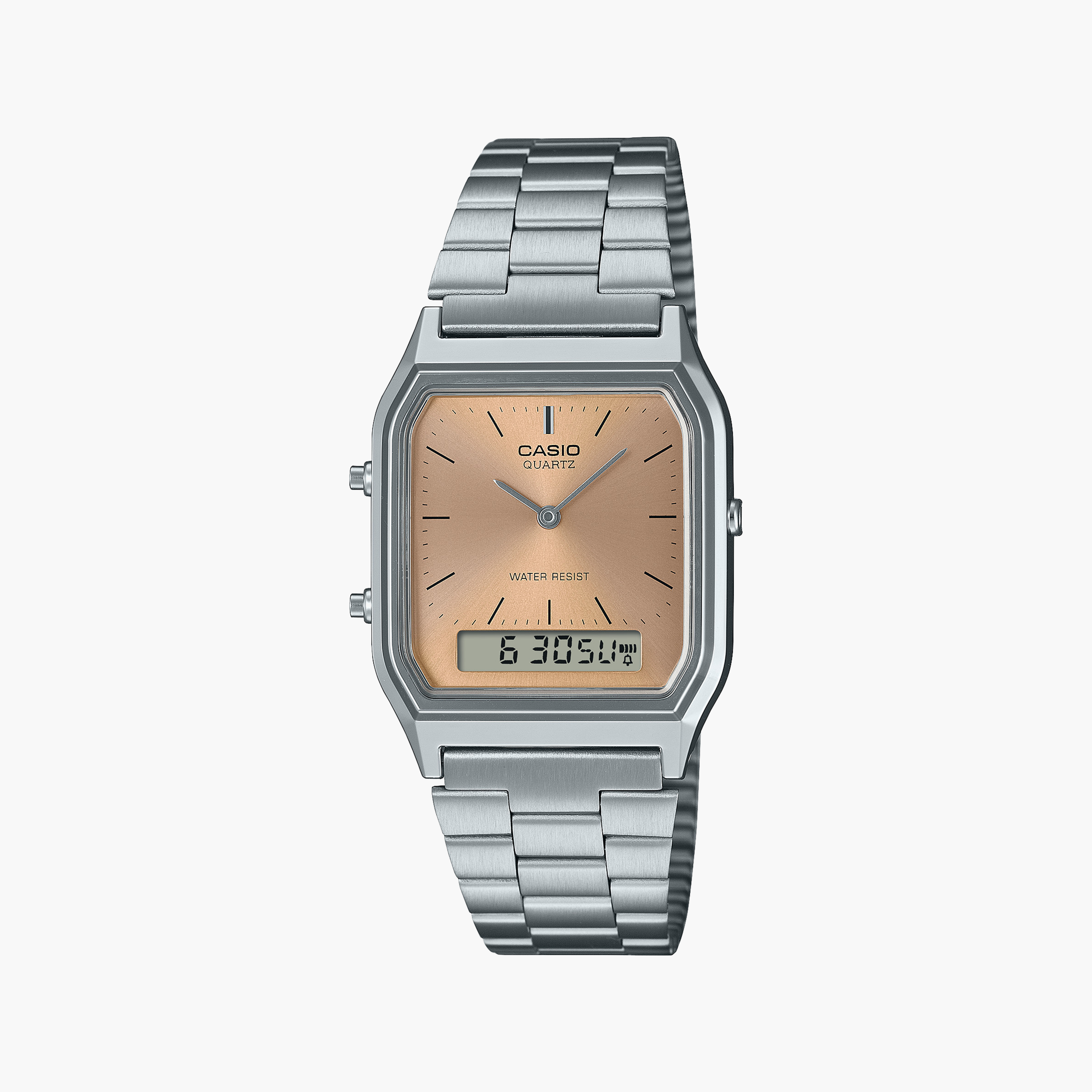 Casio Women's Pink Copper Watch, Silver & Rose Gold | Aq-230a-4amqyes