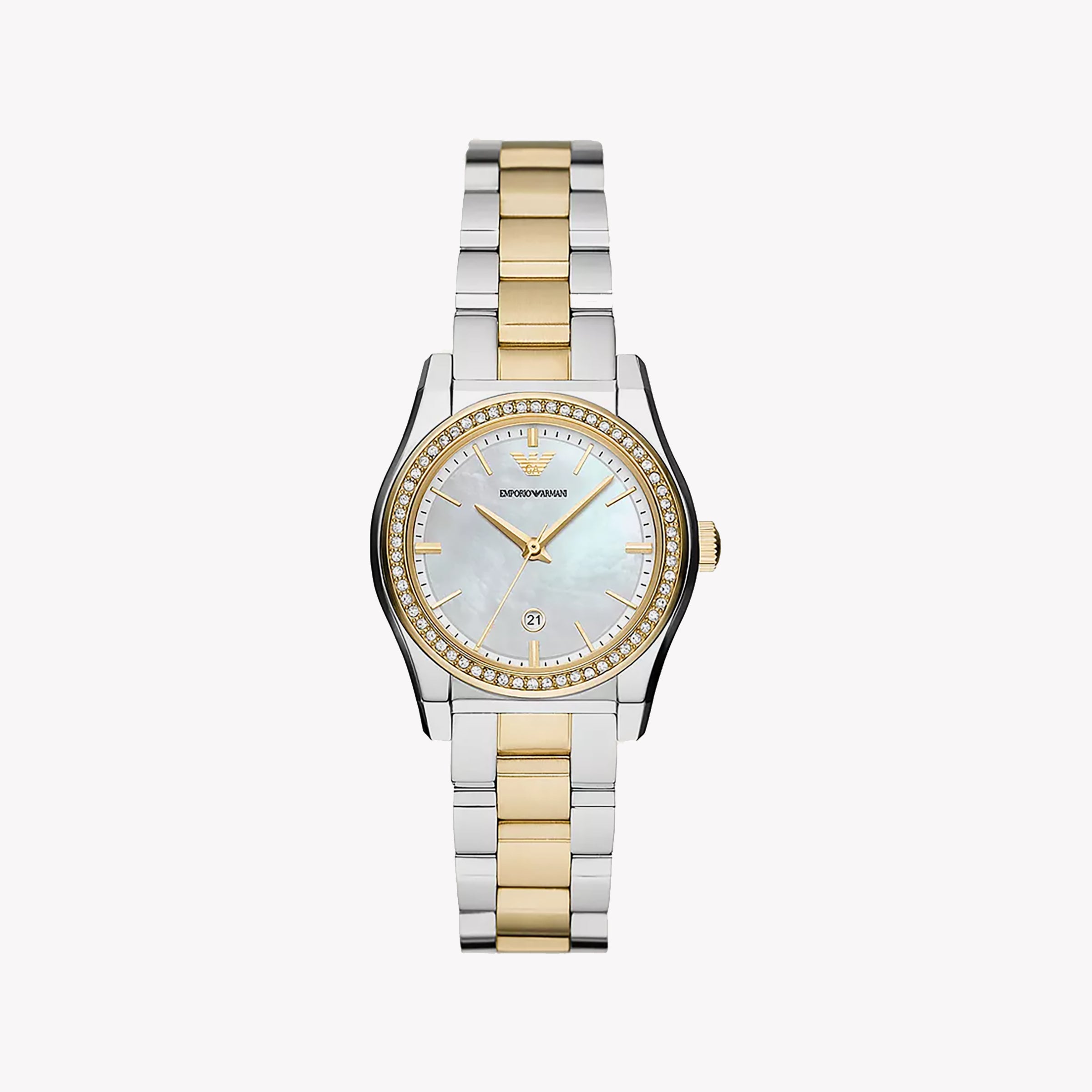 Emporio Armani Women's Silver/Gold Watch, White Dial | Ar11559
