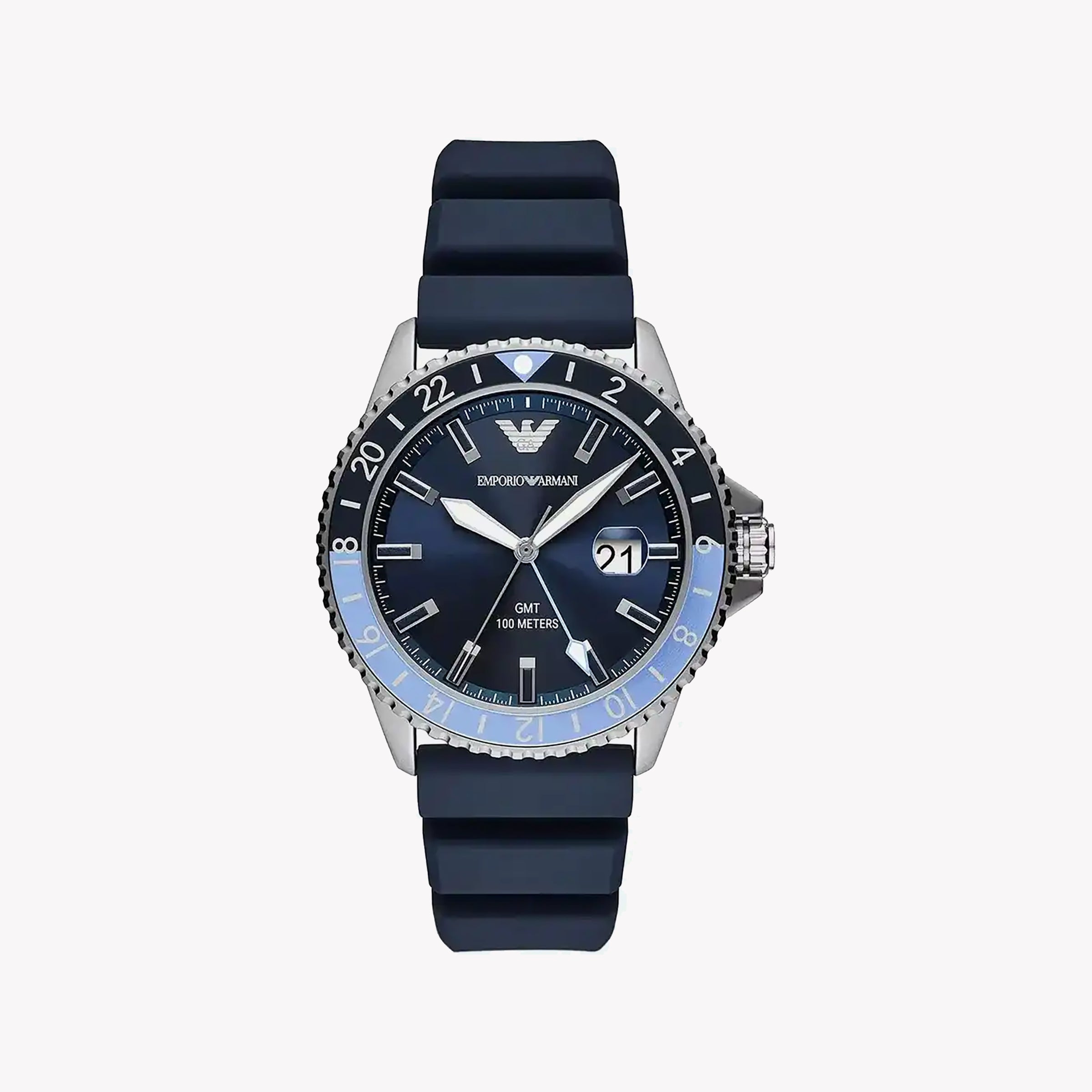Emporio Armani Men's Silver & Blue Silicone Watch, Blue Dial | Ar11592