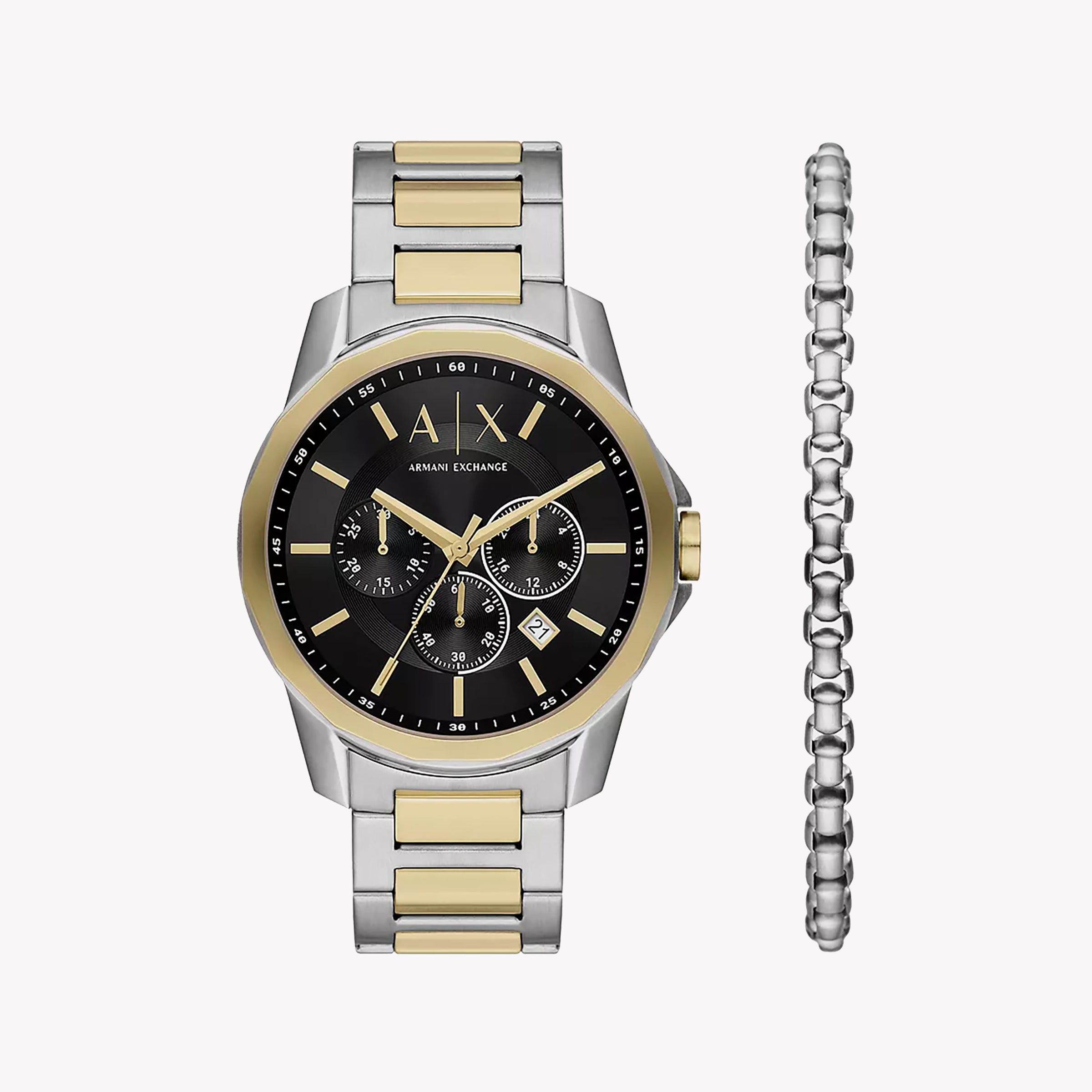 Armani Exchange Men's Silver Watch, Black Dial | Ax7148set