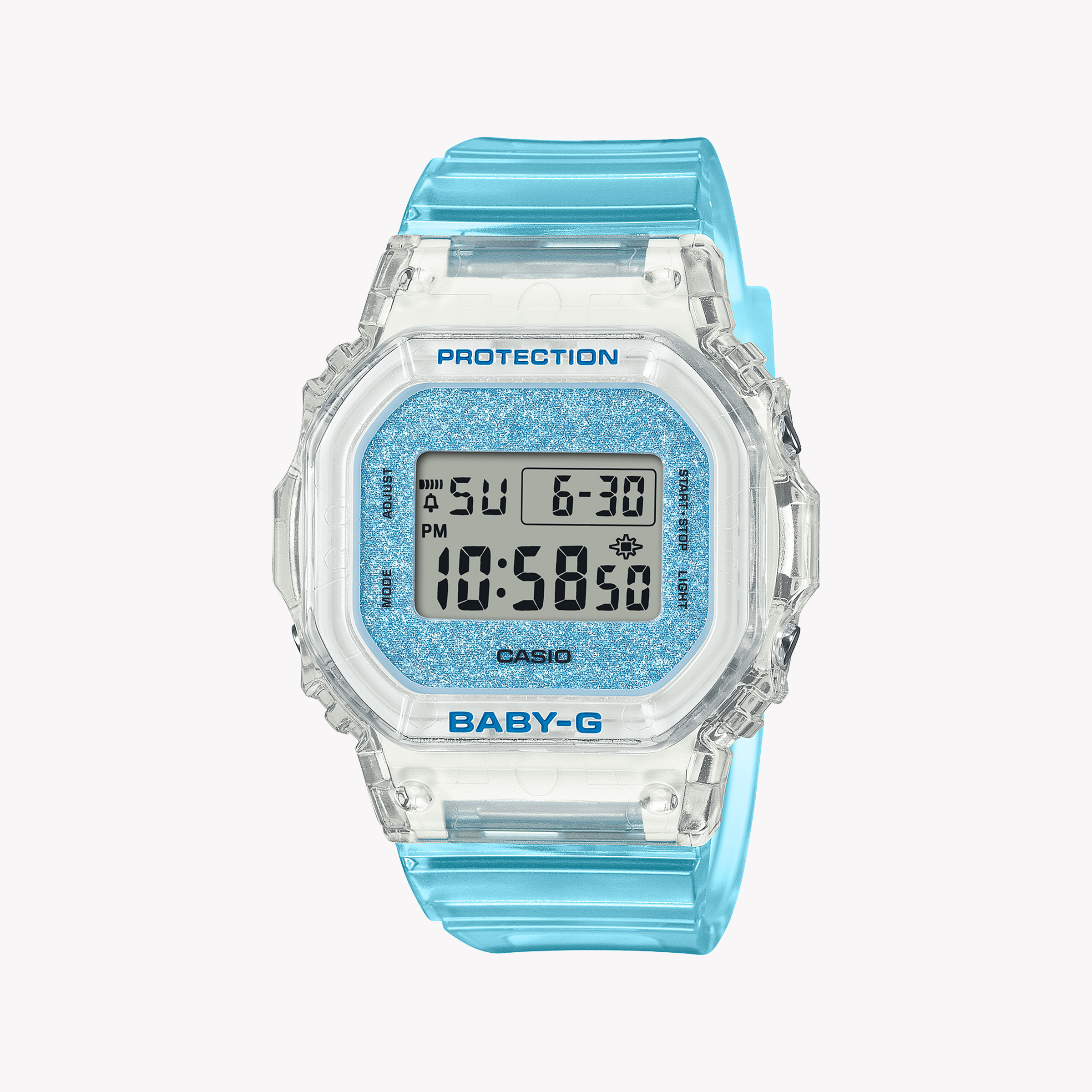 Durable Design: With a robust 38 mm resin case, this watch is built to withstand the rigors of daily life. Its transparent case color adds a modern touch, allowing the intricate digital dial to shine through, while the blue resin band ensures a secure and comfortable fit for all-day wear.