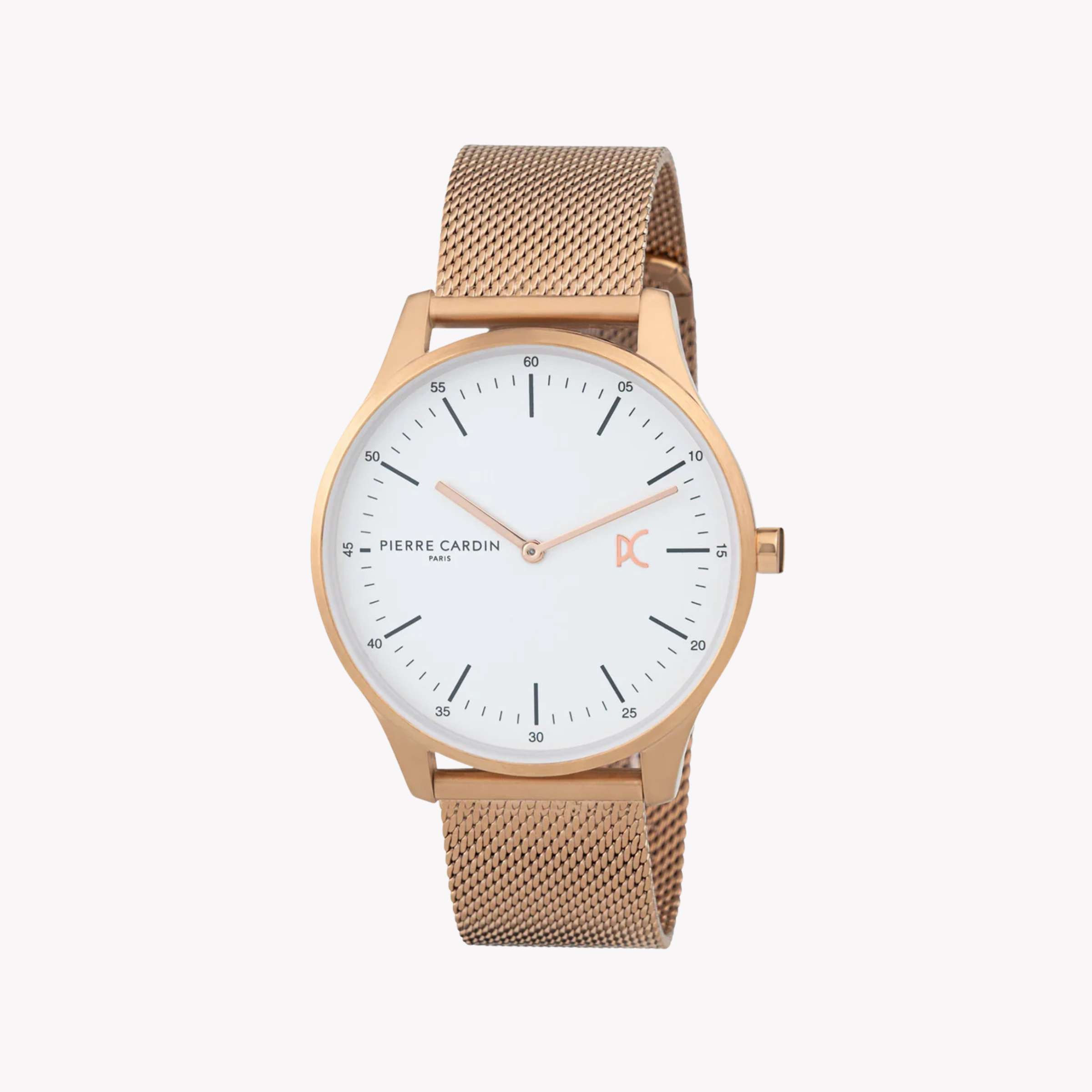 A stylish and luxurious-looking watch, the Pierre Cardin watch with a Stainless Steel Round Rose Gold case features a Rose Gold Stainless Steel Band and a Silver dial. It has a case diameter of 42 mm it will be a great addition to your outfit