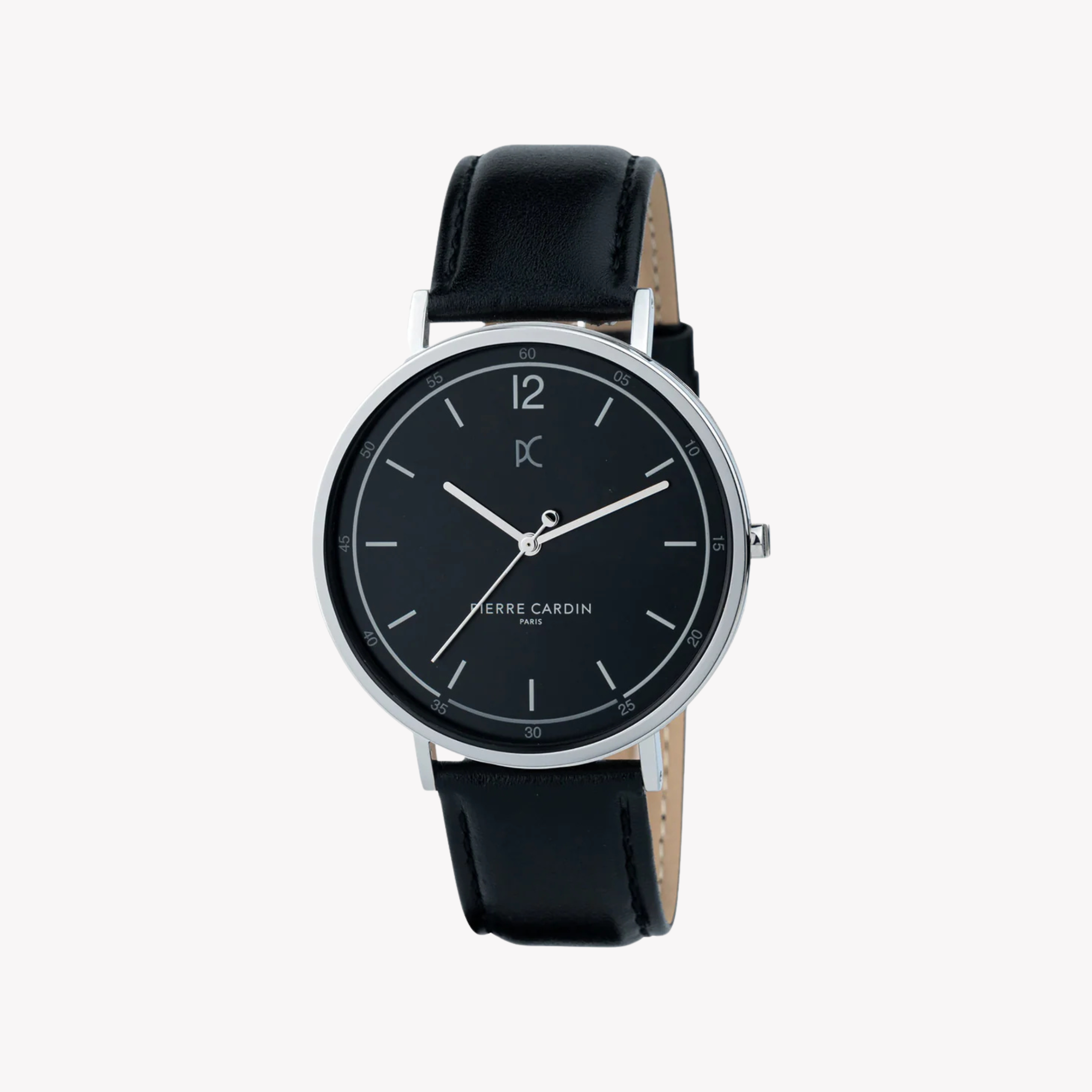Pierre Cardin Men's Silver Stainless Steel, Black Leather | Cbn.3003