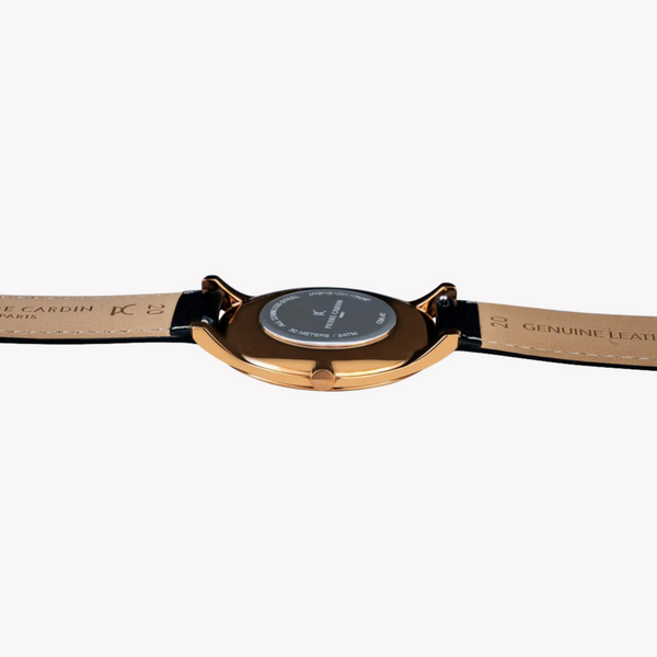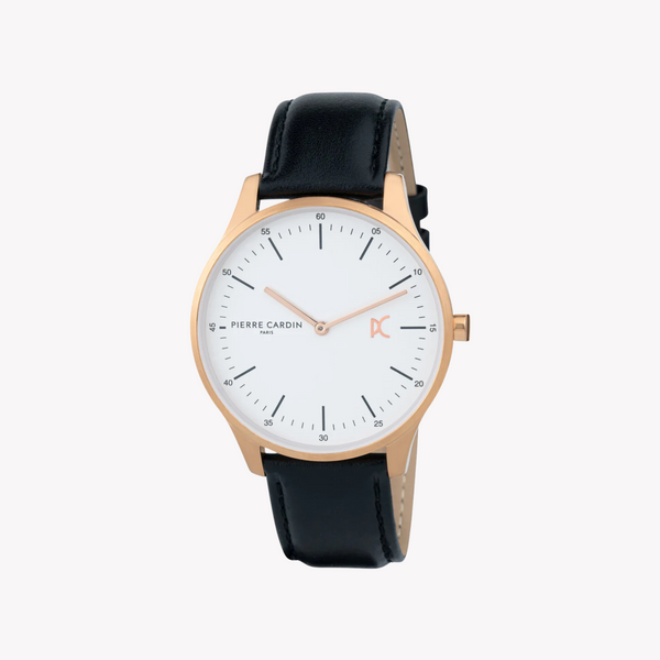 A stylish and luxurious-looking watch, the Pierre Cardin watch with a Stainless Steel Round Rose Gold case features a Black Leather Band and a Rose Gold dial. It has a case diameter of 39 mm it will be a great addition to your outfit